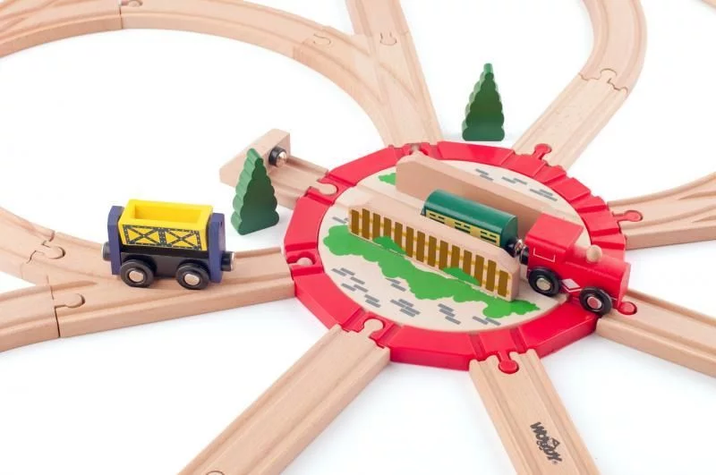 Šis medinis 8 krypčių pasukamas stalas padės atskleisti geriausias kiekvieno žaidimo savybes ir padės jauniems kūrybingiems protams ištirti daugybę naujų krypčių. Su šiuo gaminiu suderinama dauguma kitų pagrindinių medinių geležinkelių gamintojų.