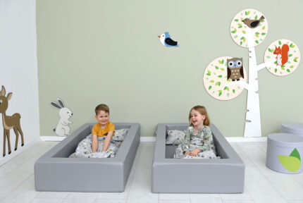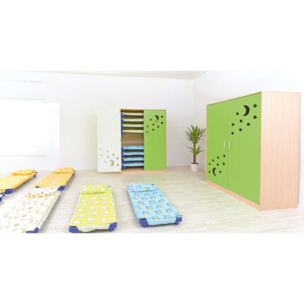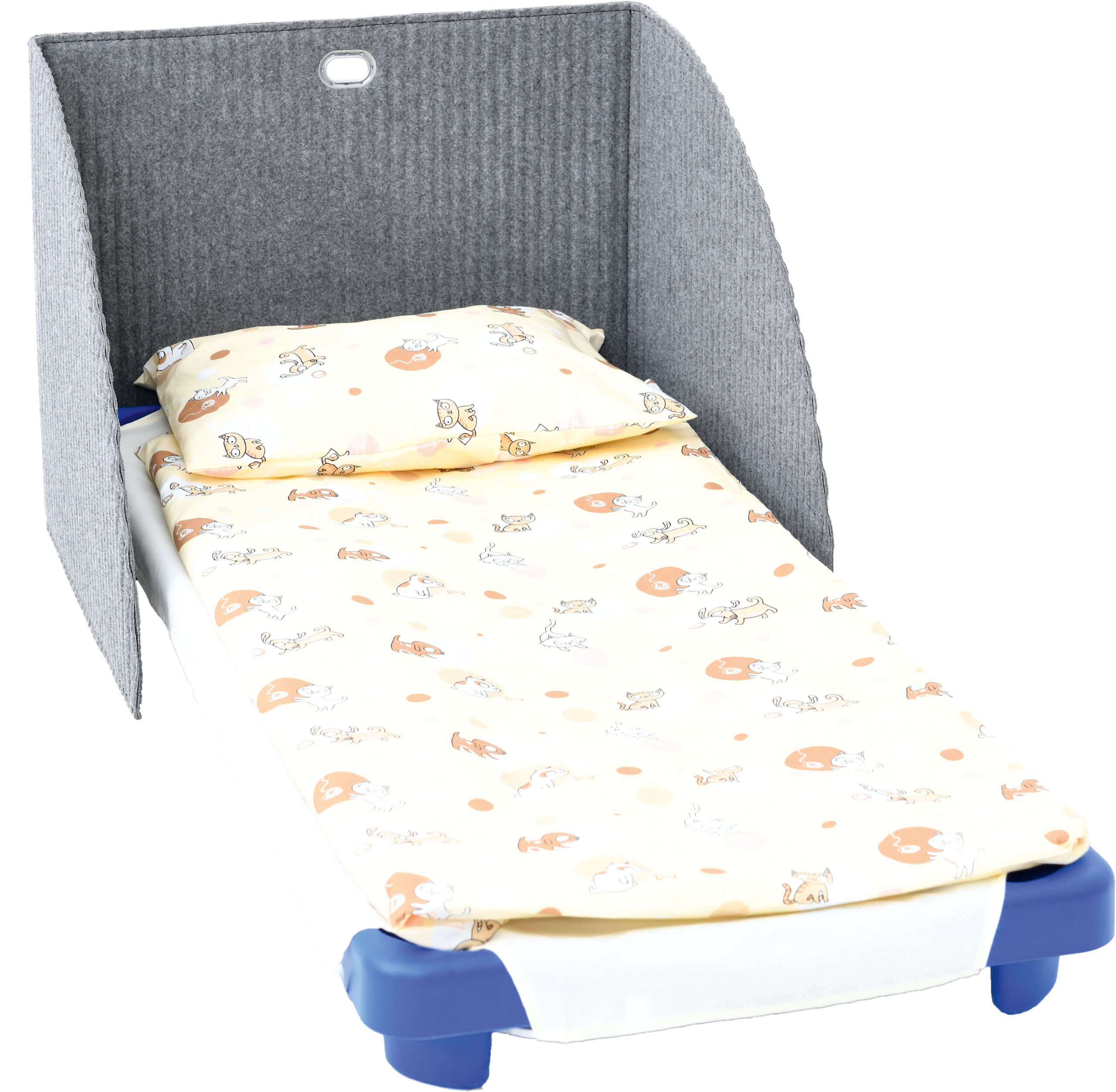 Akustinė sienelė su standžiu audiniu dengtu viduriu. Pastatytas šalia lovytės, jis padeda sumažinti triukšmą, kuris pasiekia joje gulintį vaiką.