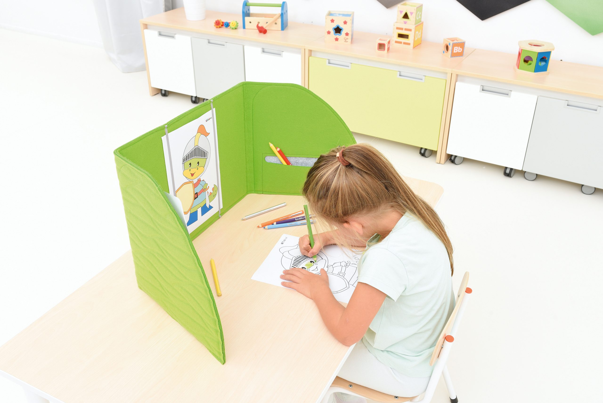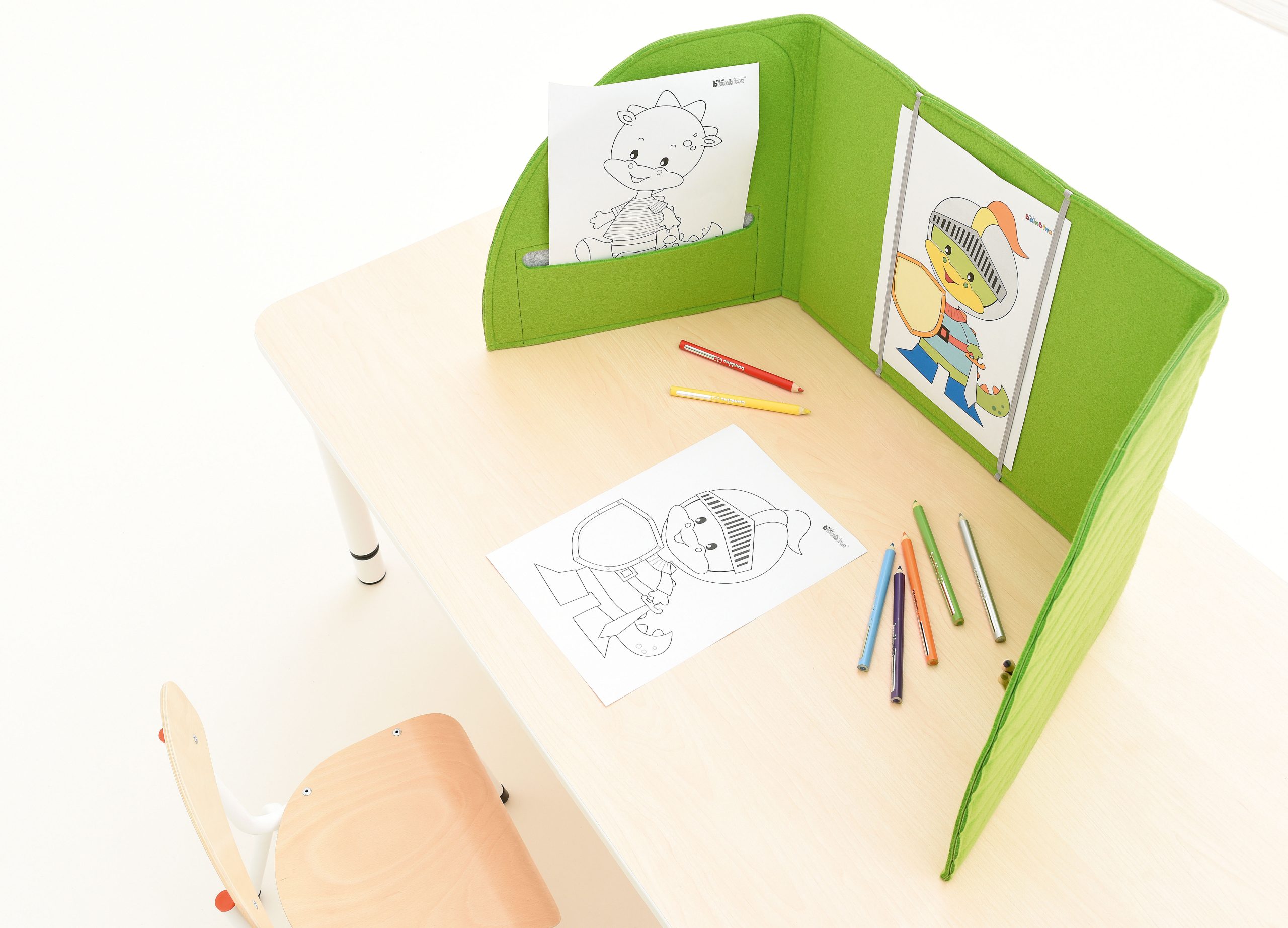 Akustinis ekranas su standžiu audiniu dengtu centru. Uždėtas ant stalo viršaus, jis leidžia sumažinti prie stalo sėdintį vaiką pasiekiantį triukšmą. Viduje sienelė turi dvi gumytes centrinėje dalyje (jomis galima laikyti, pvz., popierių ar paveikslėlį) ir kišenėles sparnuose (jomis galima lengvai laikyti įvairius smulkius daiktus, pvz., pieštukus).