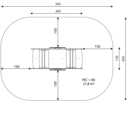 Saugos zona: 502 x 500 cm