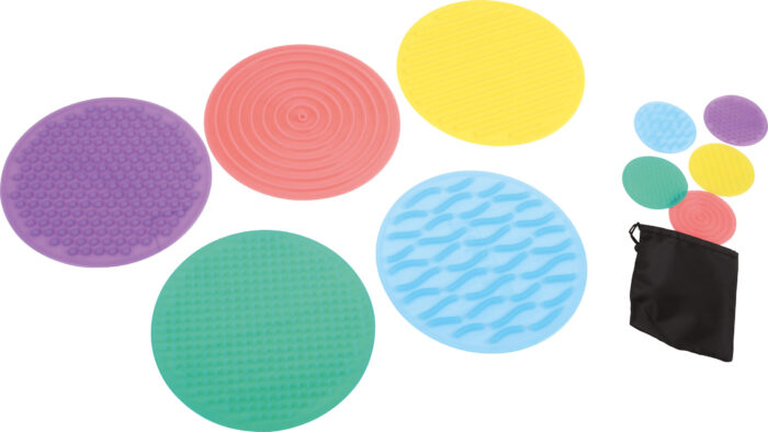 Šį rinkinį sudaro 10 apskritų diskų su tekstūra, pagamintų iš itin minkšto lankstaus silikono – 5 dideli ir 5 maži. Kiekvieno apskritimo paviršiuje yra raštas, kuris yra išskirtinis ir skiriasi nuo kitų rinkinio dalių. Vaikai gali pajusti šias tekstūras ir atrasti jų skirtumus: įdėję mažus apskritimus į pateiktą baltą medvilninį maišelį, jie gali išbandyti, ar gali apibūdinti ar nuspėti, kokį raštą jaučia, arba, naudodami kojas, gali vaikščioti po didelius sensorinius apskritimus ir išbandyti, ar gali juos atskirti.