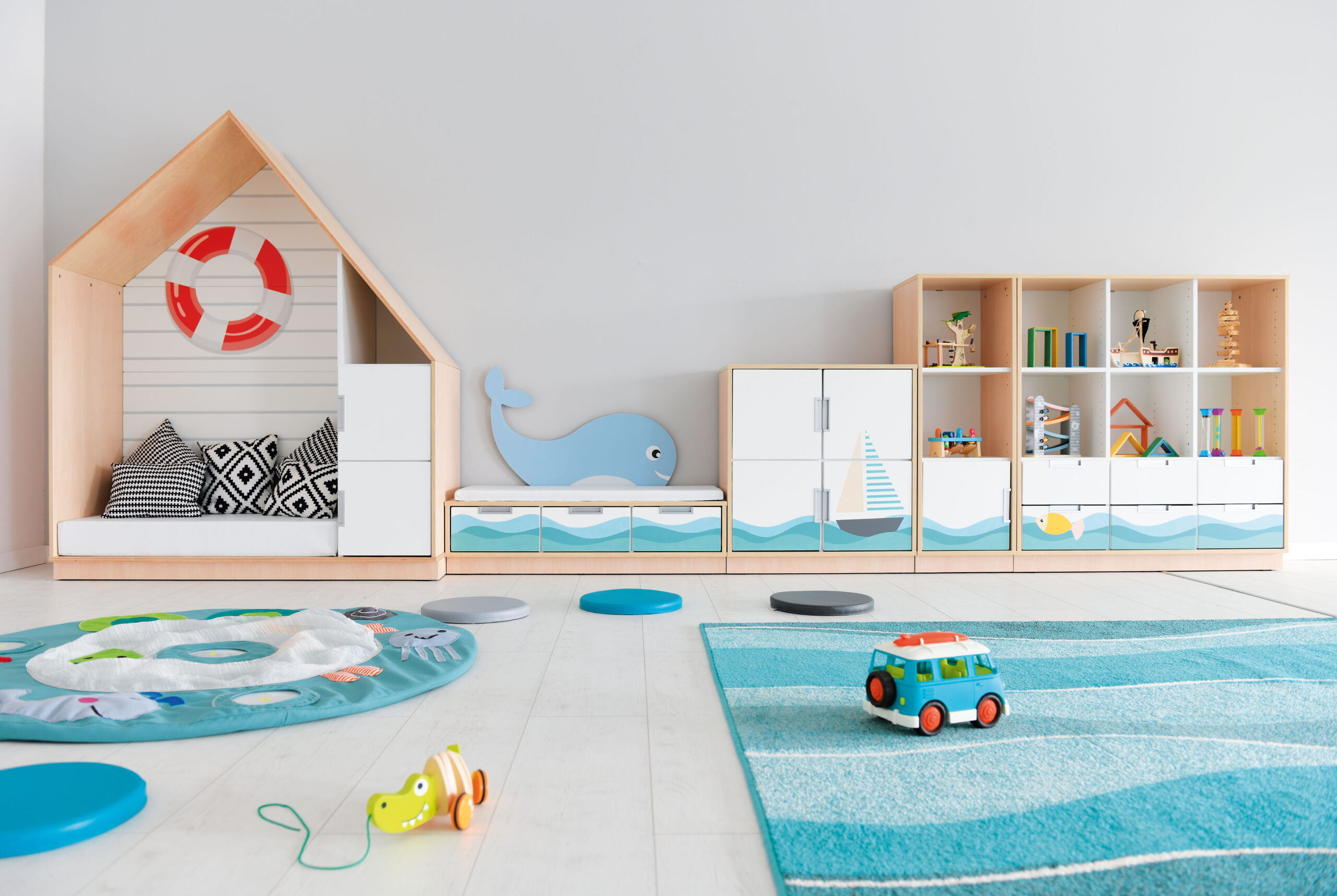 „Quadro“ teminių baldų rinkinius sudaro funkcinės spintelės su unikaliais fasadais, skirtais skirtingoms teminėms sritims uždengti. Spalvingos, vaikams pritaikytos aplikacijos sukuria įkvepiančią, tačiau santūrią aplinką ir skatina žaisti bei mokytis. Baldų komplektą galima užsisakyti tik kaip visumą. Jį galima papildyti daugeliu papildomų elementų iš mūsų asortimento, pavyzdžiui, sienų aplikacijomis, kilimais ar žaidimų zonomis su atitinkama tematika.
