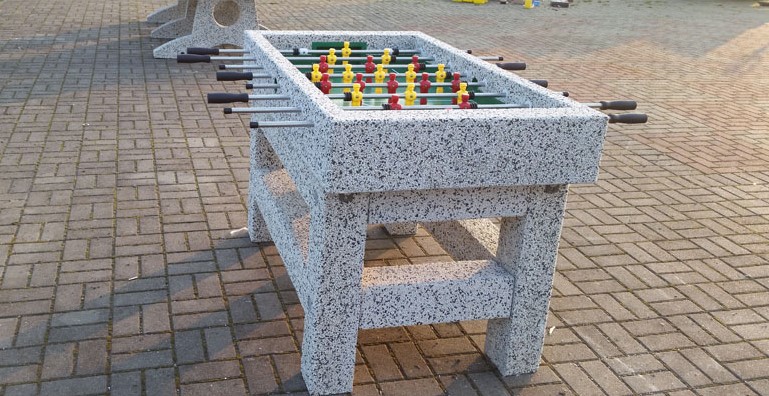 Betoninis stalas stalo futbolui žaisti. Stalas pagamintas iš natūralių užpildų. Žaidimo paviršius profiliuotas kampuose, visa tai išlyginta ir padengta keliais dažų sluoksniais, atspariais smūgiams ir oro sąlygoms. Kiti elementai pagaminti iš kieto plastiko, gumos ir nerūdijančio plieno.