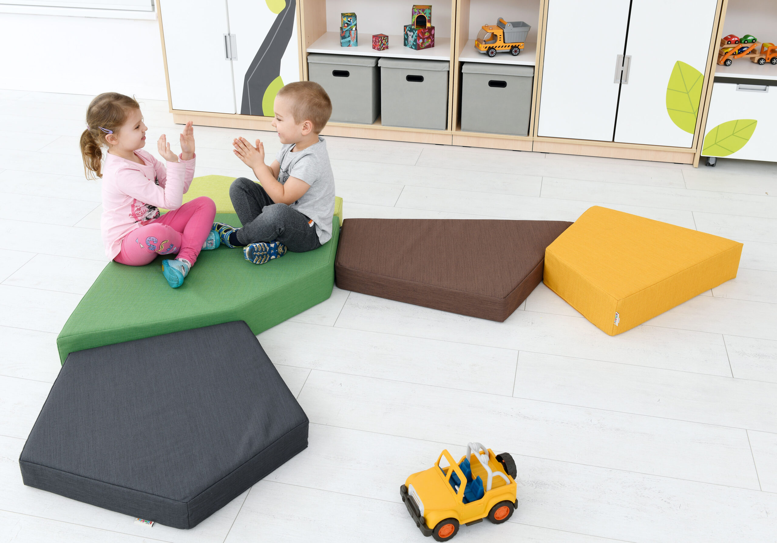 Quadro 1 čiužinių rinkinys – puikus sprendimas vaikų žaidimų zonoms. Pagamintas iš putplasčio, aptrauktas aukštos kokybės itin patvariu nedegiu audiniu. Dėl labai didelio atsparumo dėmėms ir purvui idealiai tinka vaikų darželiams ir mokykloms. Audinio parametrai: 100 % poliesteris; svoris: 476 g/m; audinys atitinka DIN 4102-1 (B1 degumo klasė) ir EN-PN 1021-1; atsparumas dilimui: 96 000 ciklų.