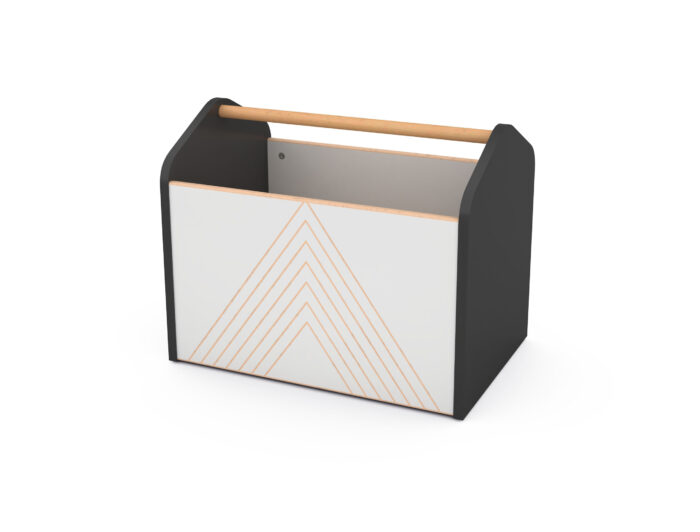 Turi praktiškus judėjimo ratukus. Priekis pagamintas iš laminuotos MDF plokštės, o šonai ir vidinis skyrius – iš laminuotos medžio drožlių plokštės. Strypas pagamintas iš buko medienos.
