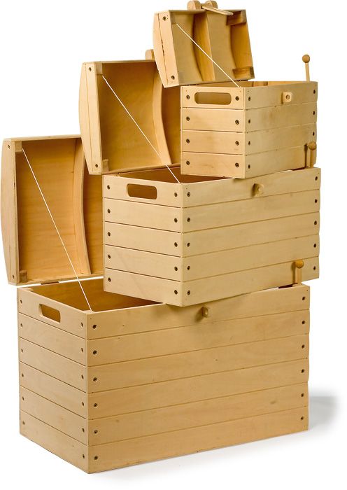 Šį rinkinį sudaro viena maža, viena vidutinė ir viena didelė natūralios spalvos medinė skrynia.