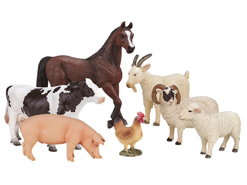 Didelės fermos gyvūnų figūrėlės teminiam žaidimui. Dėl naudojamų spalvų ir dėmesio detalėms modeliai atrodo tarsi gyvi. Figūrėlės pagamintos iš patvaraus plastiko. Į komplektą įeina: arklys (matmenys: 12,5 x 4 x 12 cm), višta (matmenys: 4,5 x 2 x 4,5 cm), avinas (matmenys: 10 x 3,5 x 8 cm), ožka (matmenys: 11 x 3 x 9,5 cm), karvė (matmenys: 14 x 4 x 7,5 cm), avis (matmenys: 10 x 3 x 7 cm), kiaulė (matmenys: 9,8 x 3 x 4,6 cm).