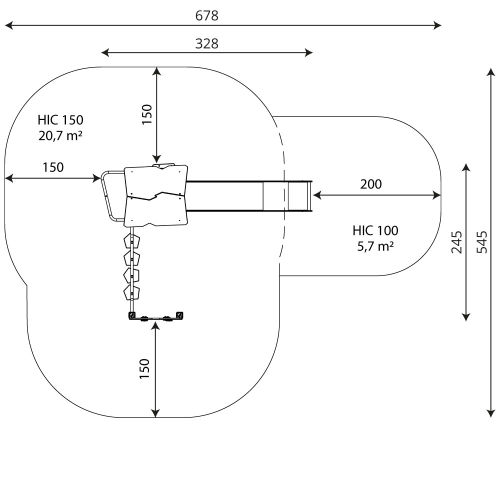 Laisvo kritimo aukštis 150 cm
