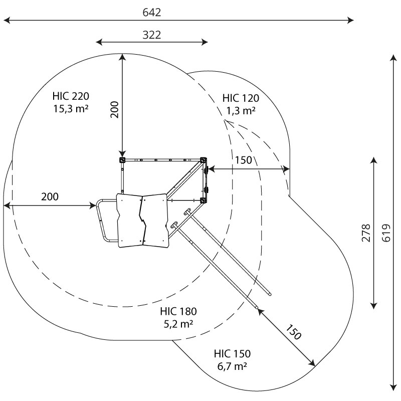 Laisvo kritimo aukštis 220 cm