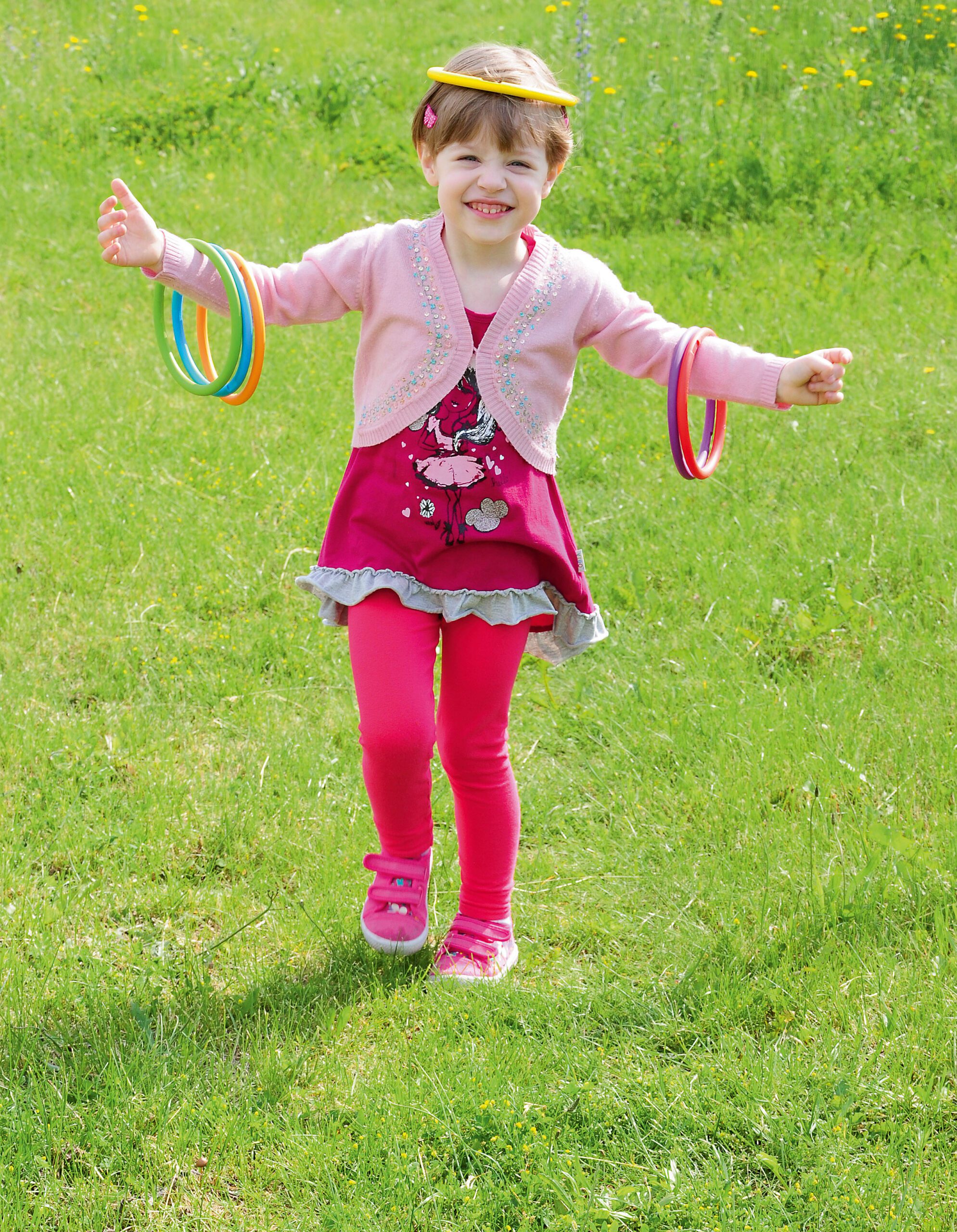 Estafečių žiedų rinkinys, pagamintas iš aukštos kokybės plastikos. Naudojamas žaidimams, kurie skatina vaikų motorinį vystymąsi.