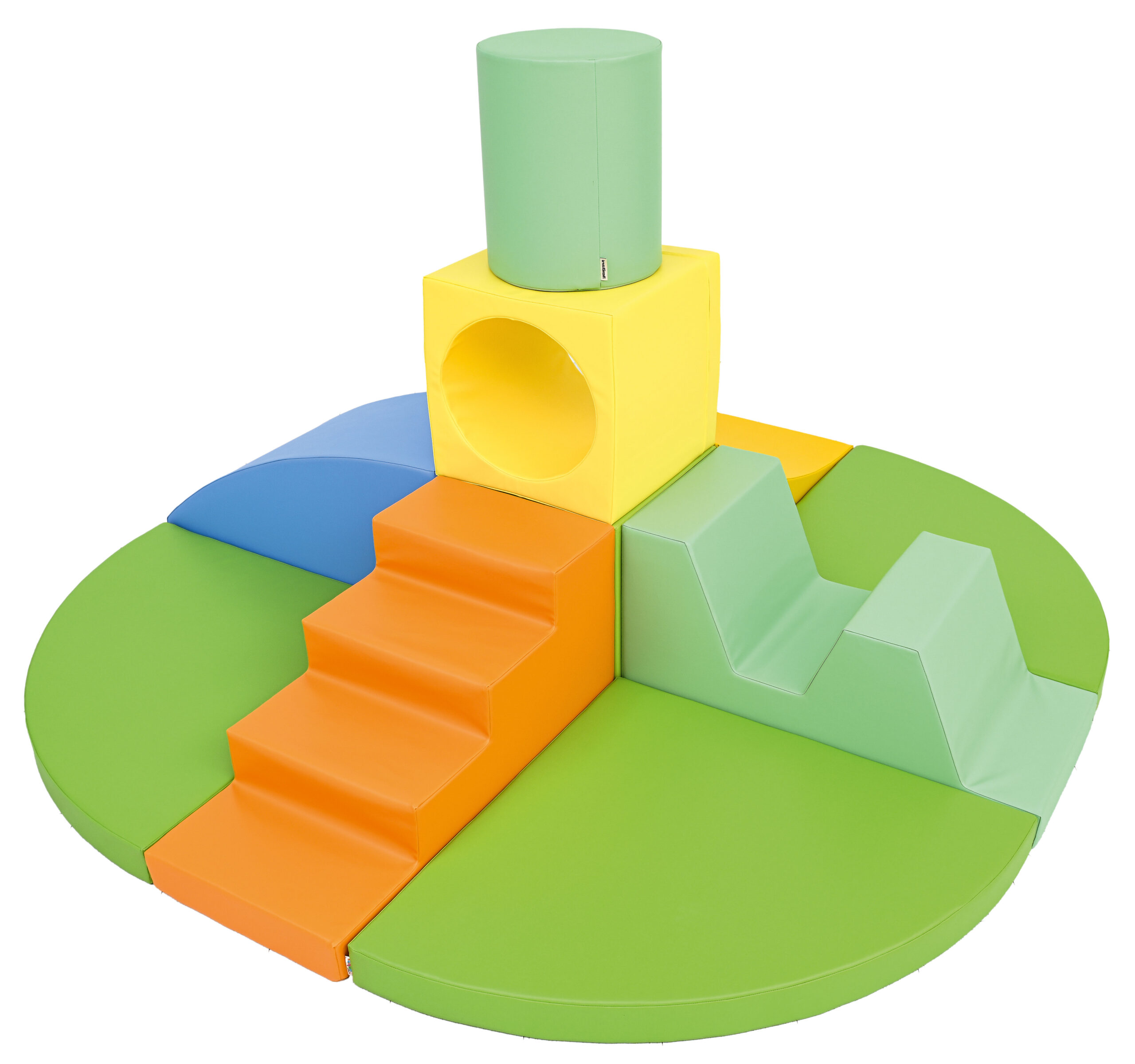 11 figūrų kliūčių ruožui sukurti. Pagamintas iš patvaraus putplasčio su lengvai prižiūrimu ftalatų neturinčiu apvalkalu. Iš apačios figūrėlės išklotos neslidžia medžiaga, todėl jas saugu naudoti.