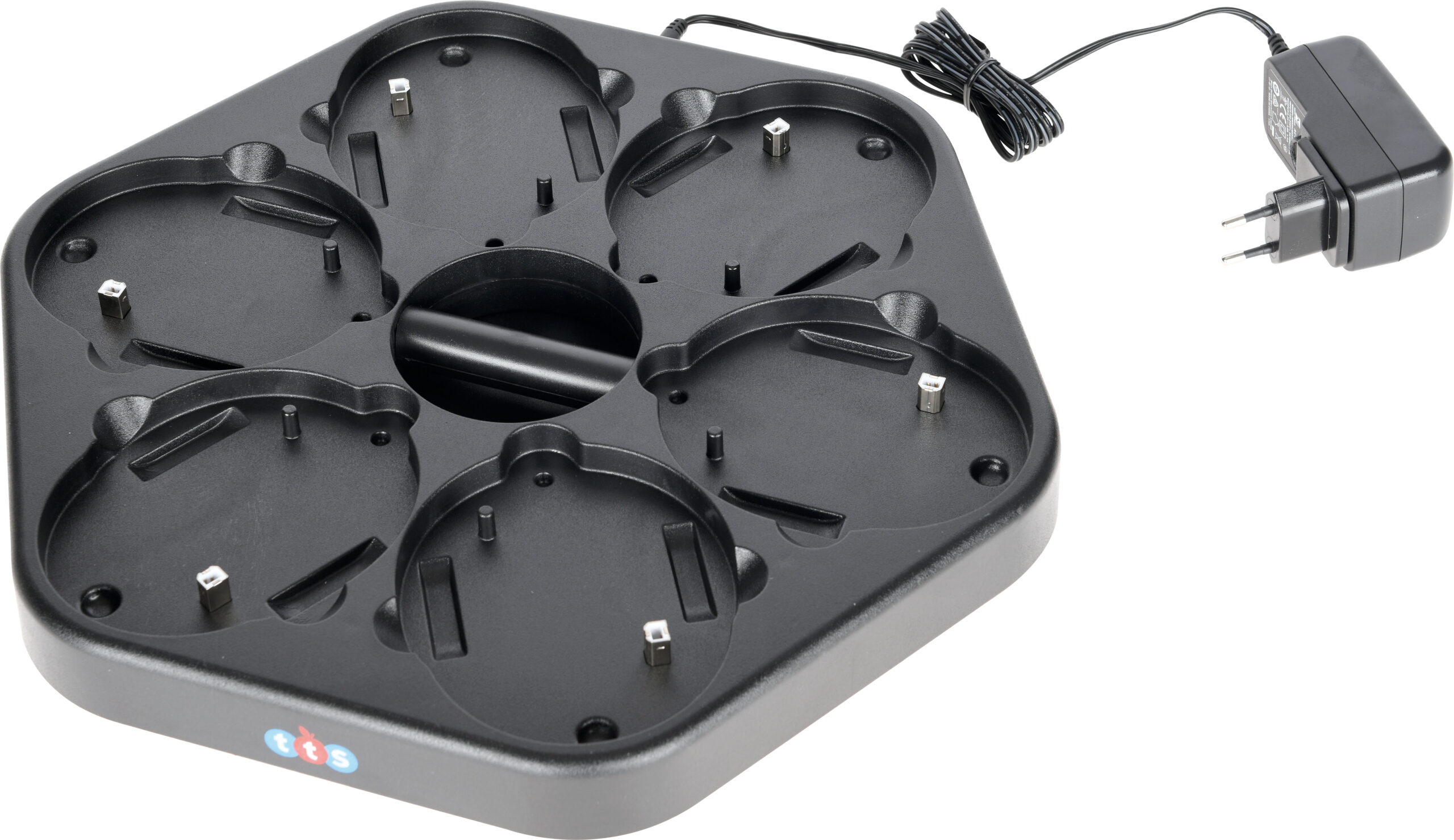 Komplekte 6 vnt. blue-boot robotukų valdomų nuotoliniu būdu ir pakrovimo stotelė su europiniu maitinimo šaltiniu leidžia vienu metu įkrauti 6 vnt robotukų "Bee-Bots" arba "Blue-Bots".