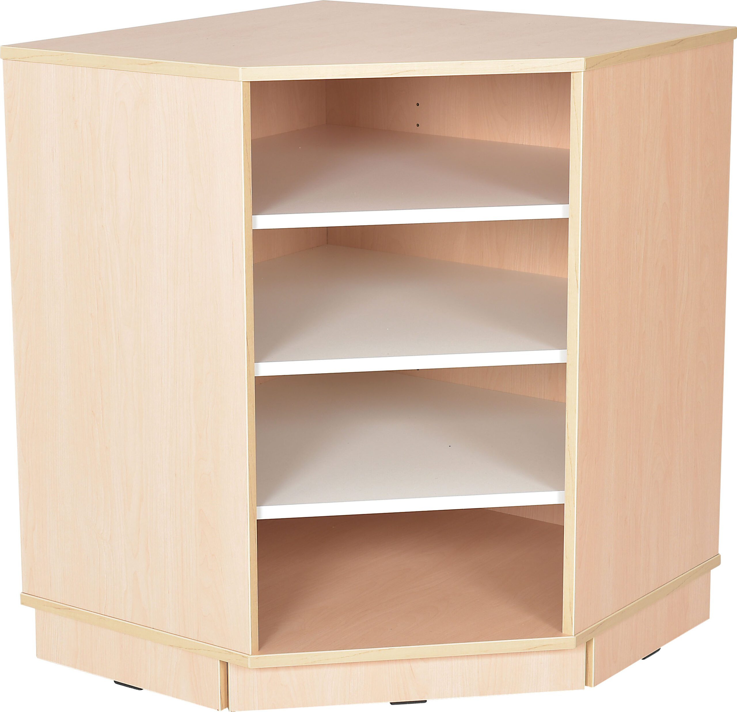 Quadro kampinė spintelė M, pagaminta iš 18 mm storio klevo arba baltos laminuotos plokštės.