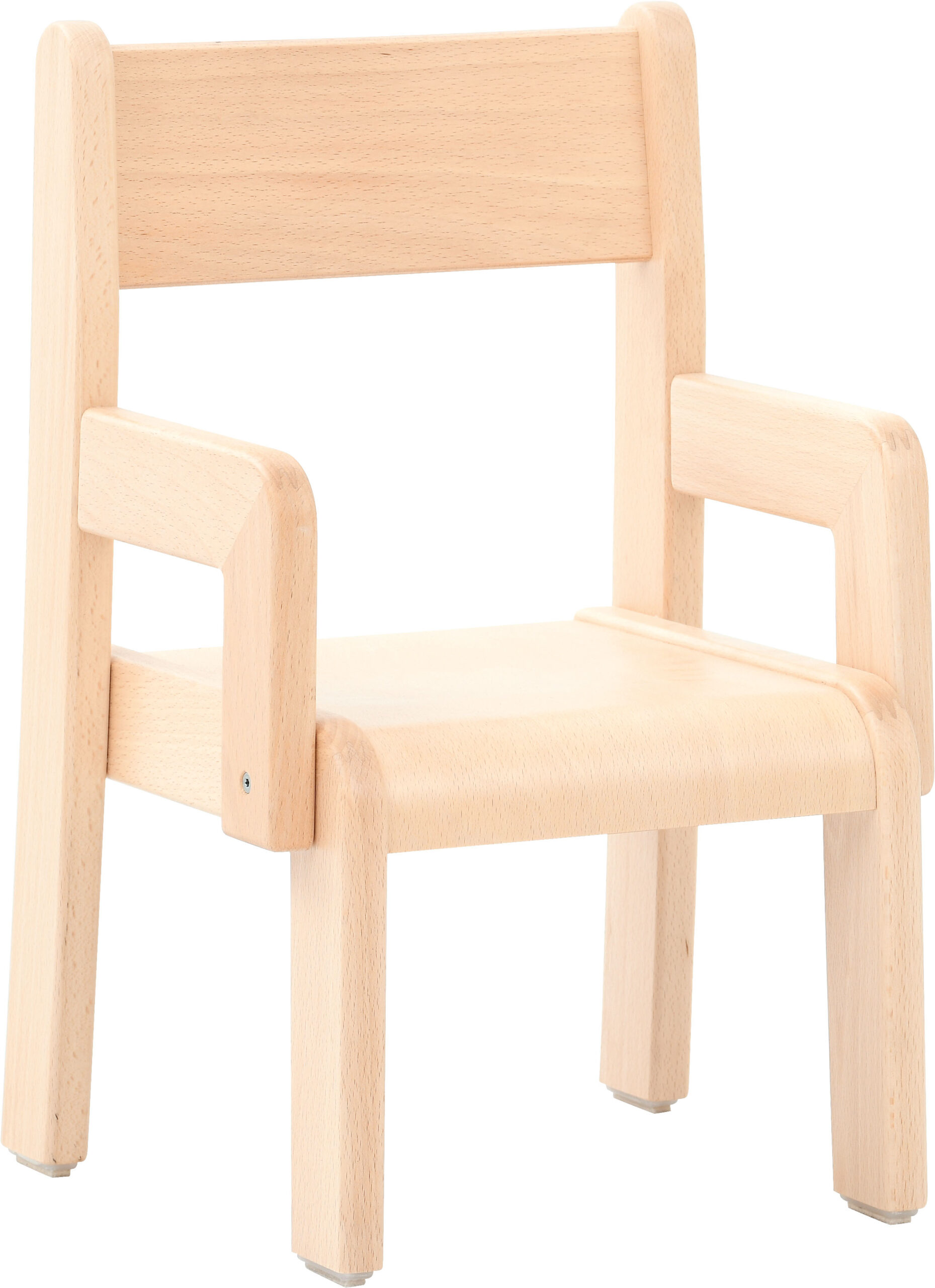 Patogi mažylio kėdutė su porankiais ir veltinio kojelėmis. Pagaminta iš lakuotos buko medienos.