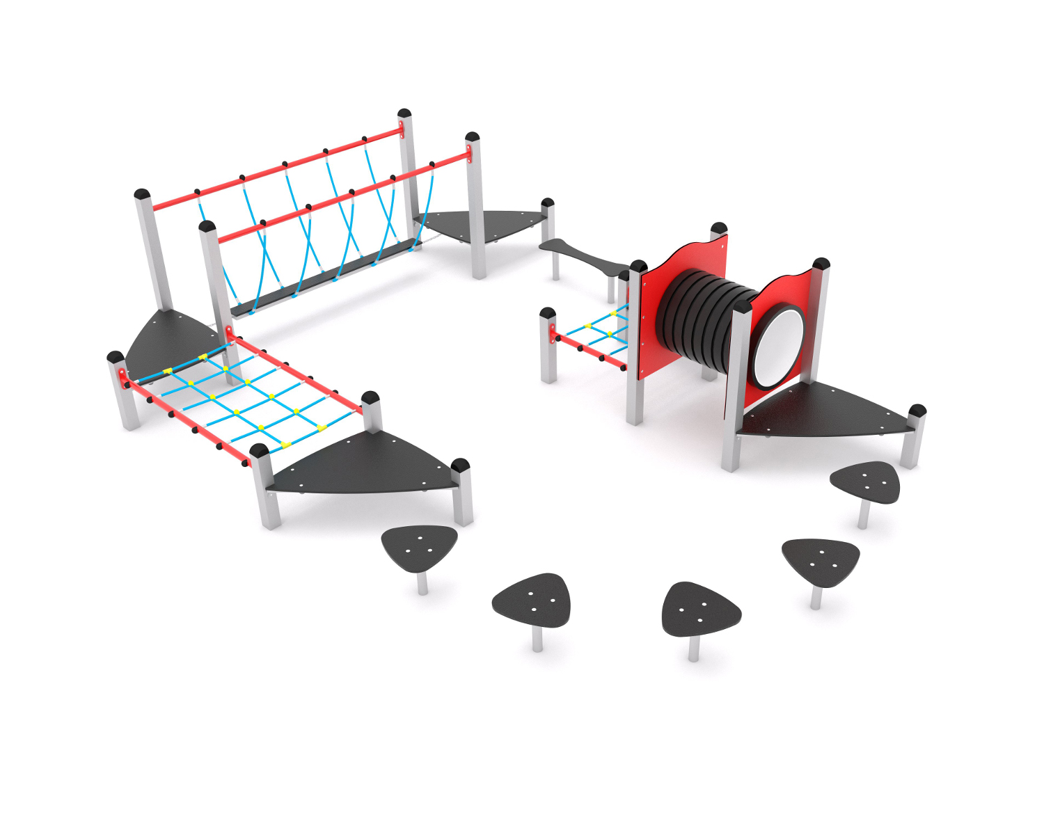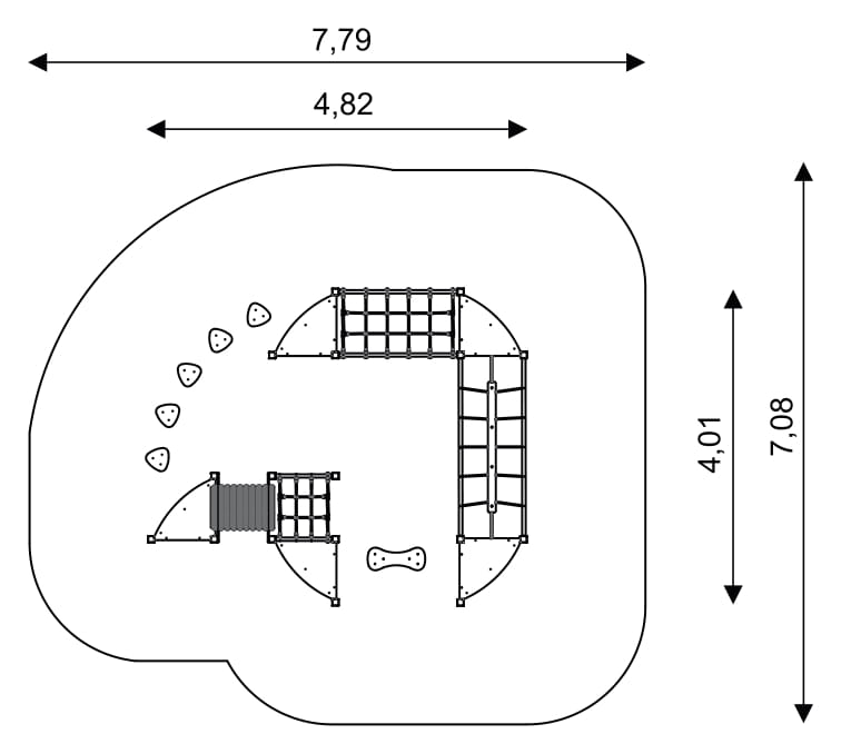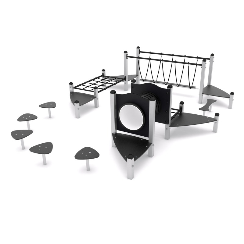 • patvarios, neslidžios ir neperšlampančios platformos bei laipiojimo sienos iš HPL;