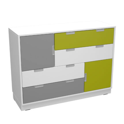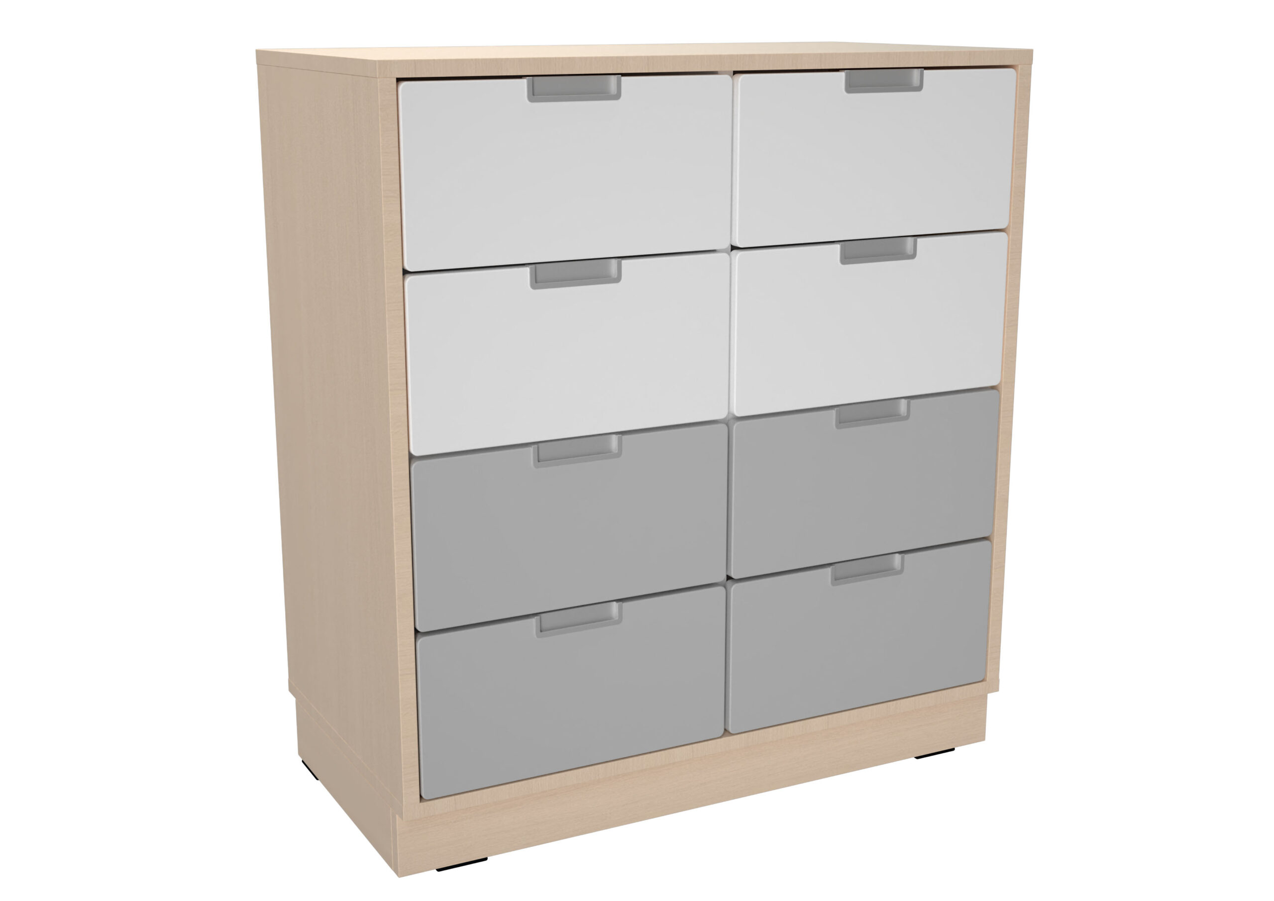 Baldai pagaminti iš 18 mm storio laminuotos plokštės, klevo atspalvio. Šių komplektų priekinės dalys yra 18 mm storio, padengtos patvaria termoplastine fanera.