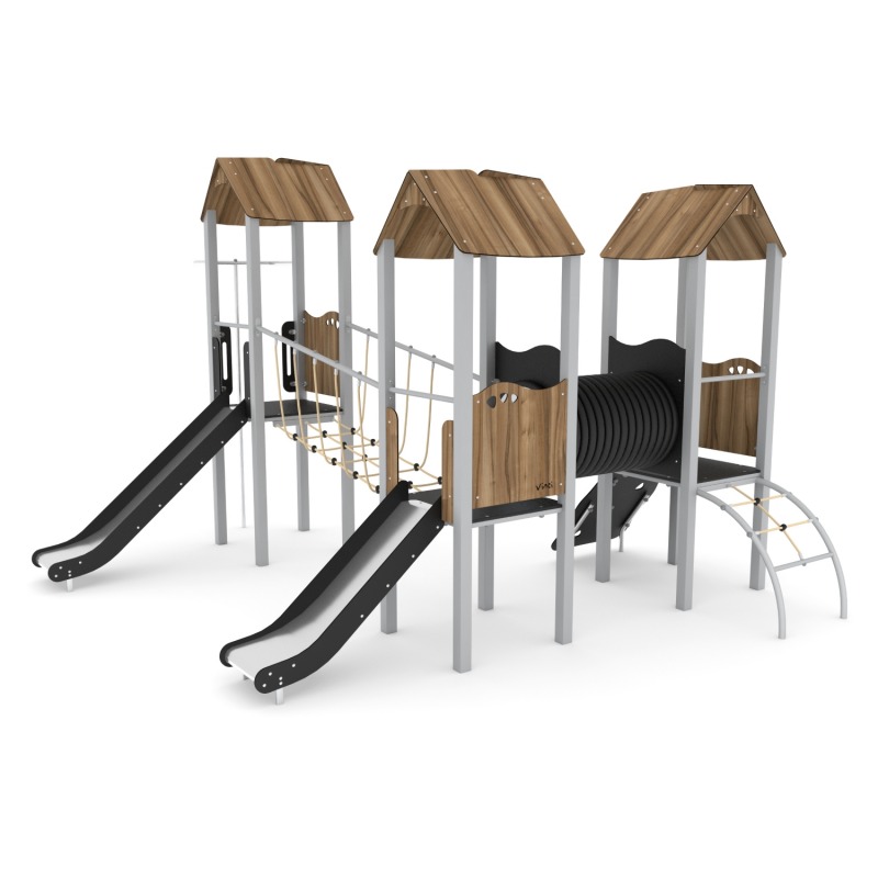 Kategorijos: Kompleksinės žaidimų aikštelės nuo 3 metų, Lauko žaidimų įranga