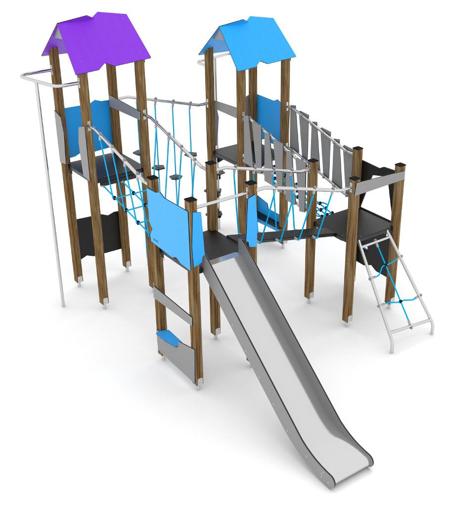 Kategorijos: Kompleksinės žaidimų aikštelės nuo 3 metų, Lauko žaidimų įranga