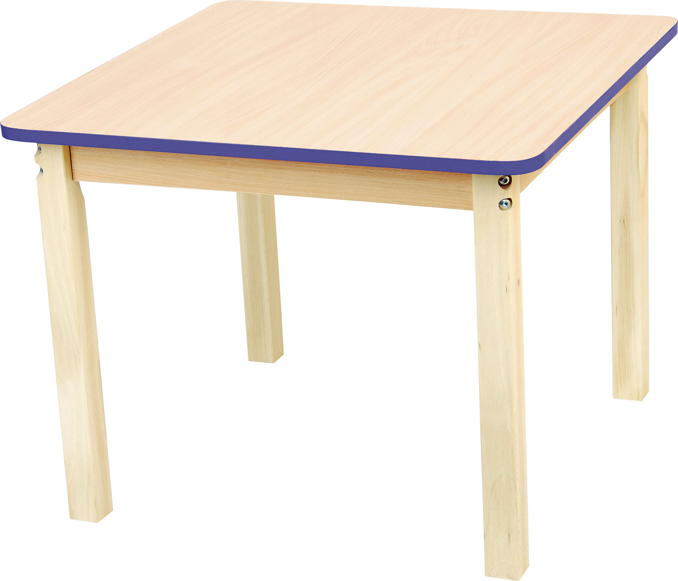 Kvadratiniai stalviršiai (74 x 74 cm) su spalvotu kraštu skirti darželiams, mokykloms ir žaidimų kambariams. Pagaminti iš 18 mm laminuotos plokštės (klevo atspalvio), su 2 mm PVC kraštu (5 spalvų pasirinkimas), kampai užapvalinti.