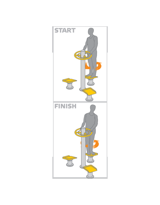 Kamštukai, dangteliai pagaminti iš plastiko. Konstrukcija metalinė, įbetonuojama. Visos metalinės detalės padengtos cinko gruntu ir dažytos milteliniu būdu. Treniruoklis atsparus oro sąlygoms, vandalizmui.