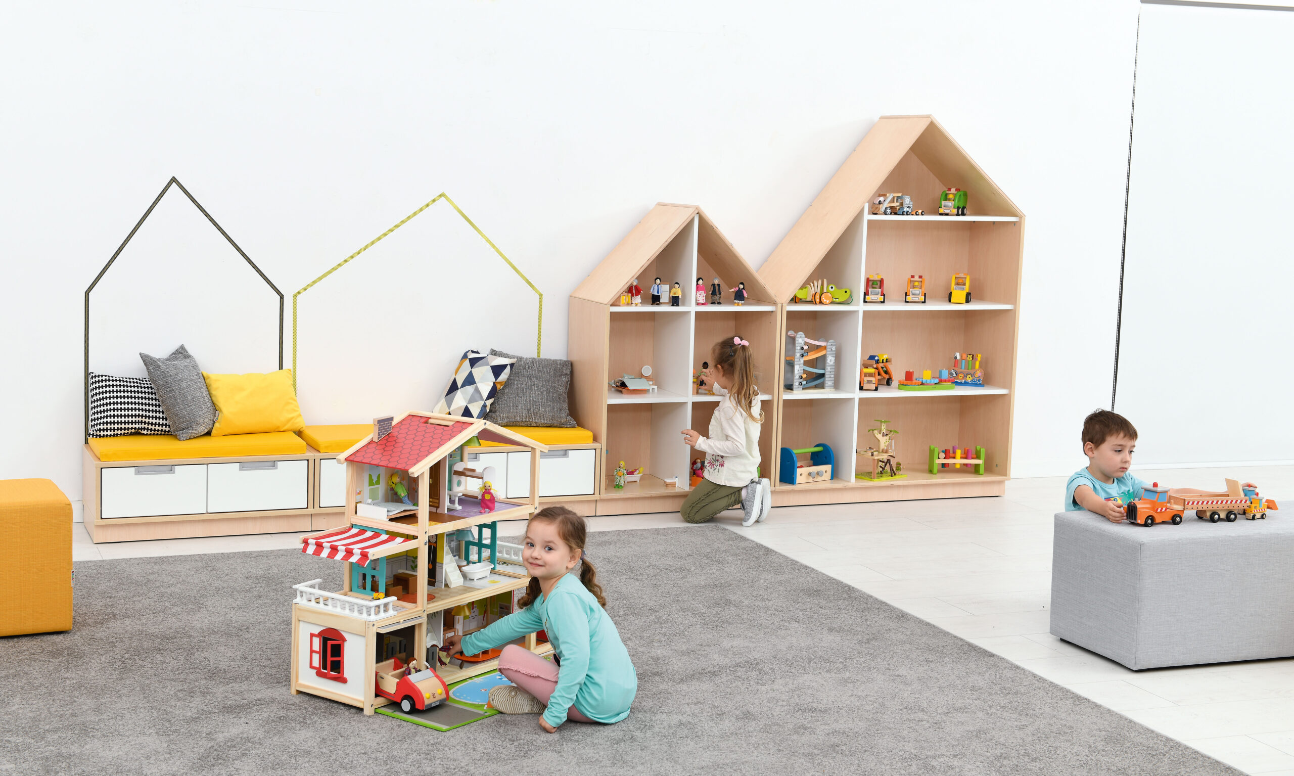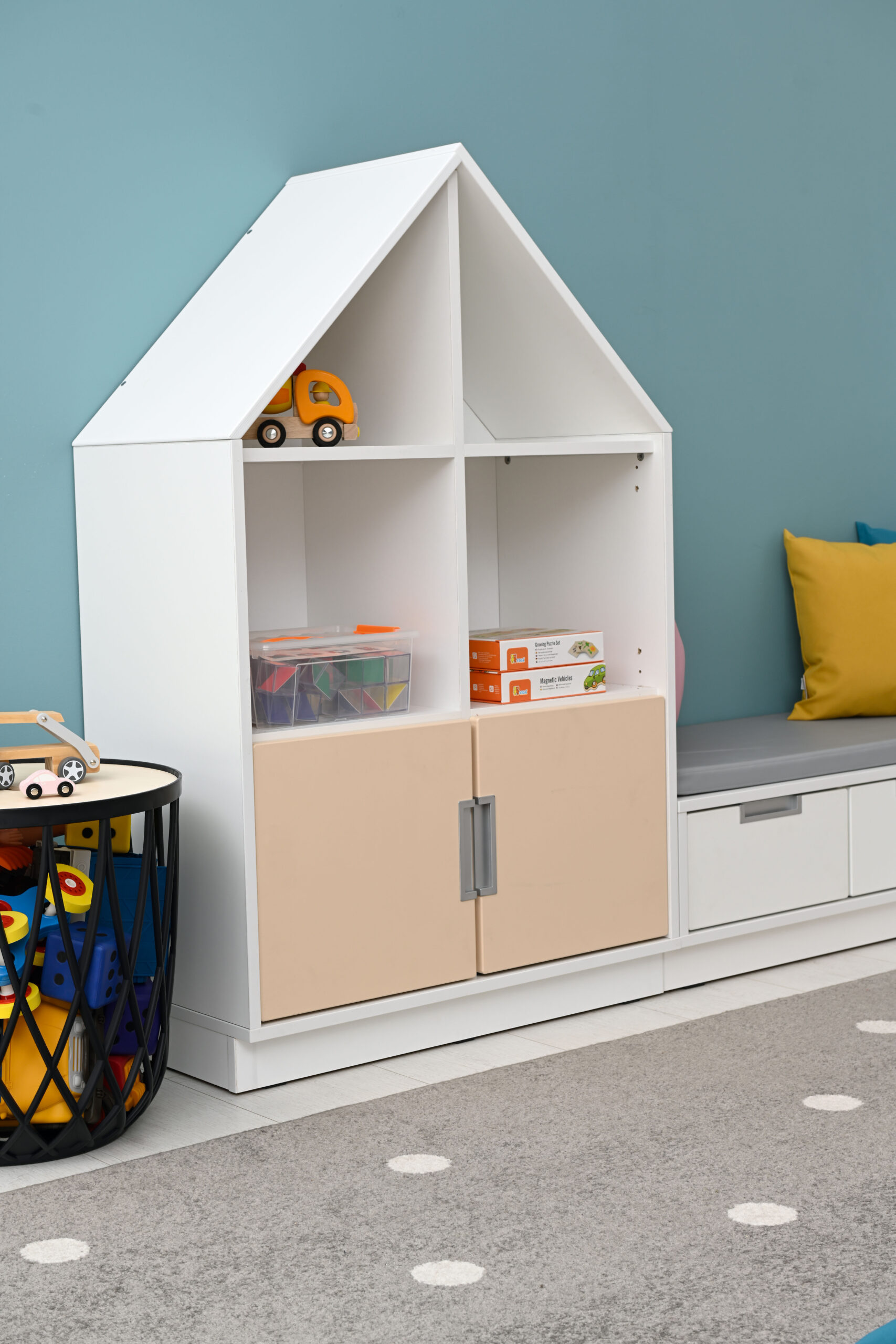 Namuko formos spintelė pagaminta iš 18 mm storio laminuotos klevo arba baltos spalvos plokštės ir 18 mm storio lakuotos faneros. Galima papildyti mažomis durelėmis (092200-092211, 092200S-092211S, parduodamos atskirai), rasite čia : https://vaikuplaneta.lt/produkto-kategorija/vidaus-inventorius/darzeliui/kita-darzeliui/