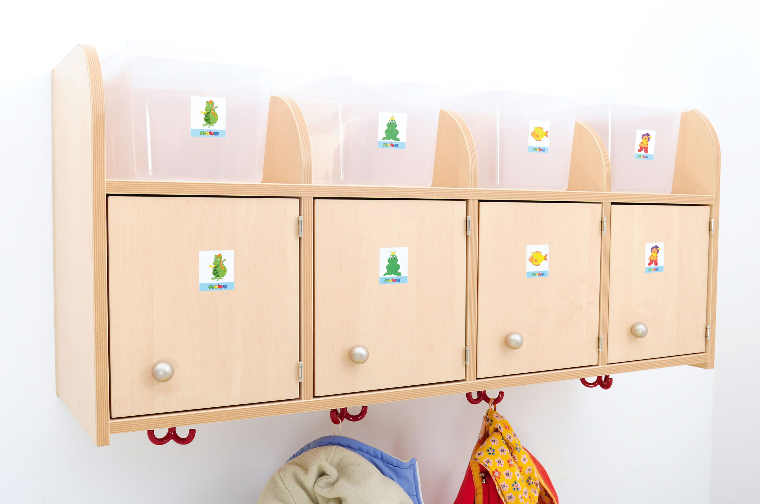 Lentyna su skyriais ir durelėmis, pagaminta iš 18 mm storio klevo atspalvio laminuotos plokštės su ABS apvadu.