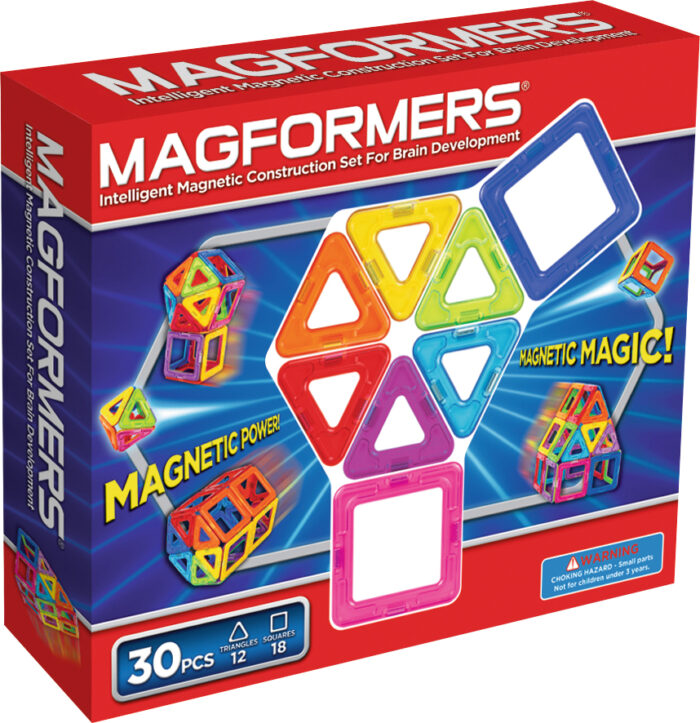 Magnetinės formelės, suteikia neribotas žaidimo galimybes. Kaladėlės lavina vaiko vaizduotę. Matmenys nuo 5,5 iki 7 cm