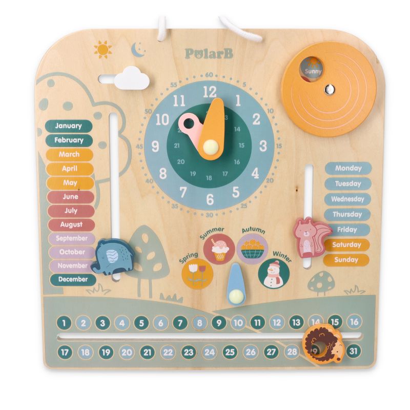 Šis mielas kalendorius yra unikali mokymosi priemonė, leidžianti jūsų vaikams nuostabiausiu ir kūrybiškiausiu būdu suprasti savaitės dienas, mėnesius, metų laikus, laiką ir orus. Anglų k.