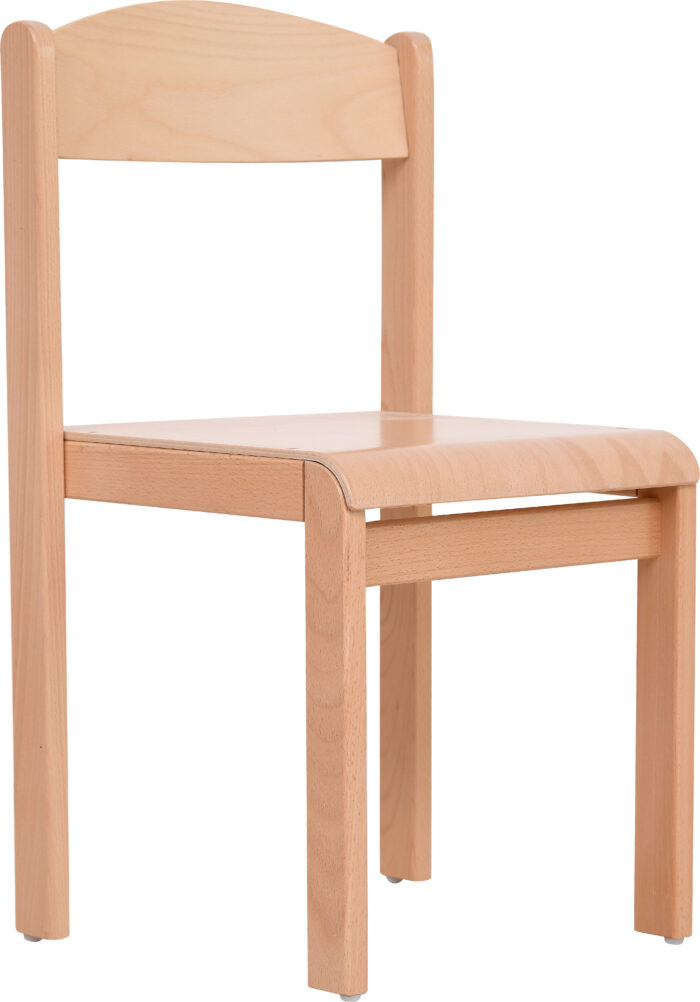 Medinė kėdė, natūralaus buko spalvos. 4 dydis pritaikytas 7–10 metų vaikams. Ergonomiškai suformuota sėdynė mažina spaudimą po keliais, o patogus atlošas padeda palaikyti taisyklingą laikyseną tiek žaidžiant, tiek mokantis.