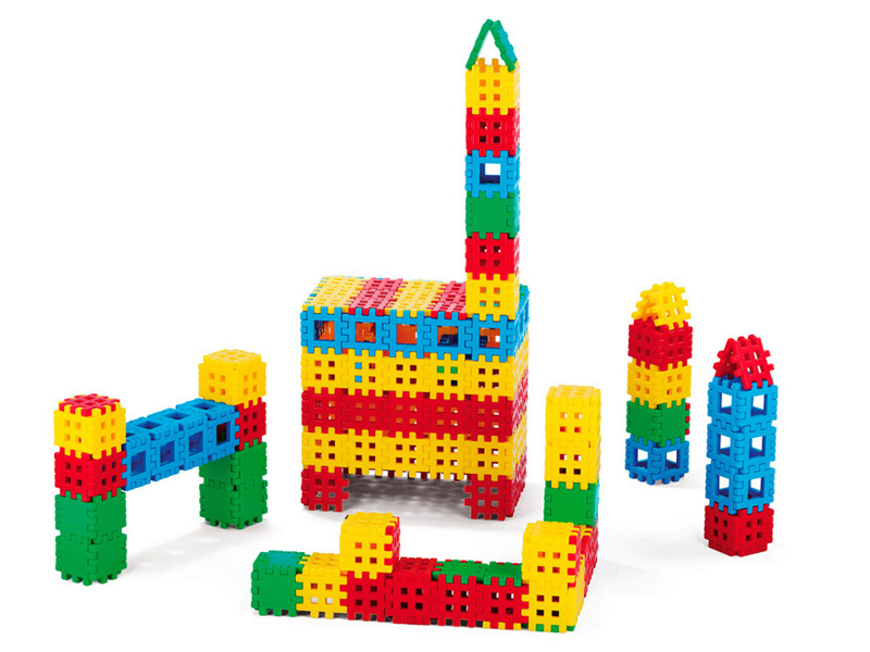 Kaladėlės-grotelės yra iš minkšto plastiko, kvadratinės detalės dydis 10,5 x10,5 cm. Unikali forma leidžia jungti detales visomis 6 kryptimis. 170 vnt.
