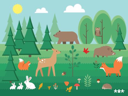 Putų kilimėliai su žaismingų gyvūnų atvaizdais, aptraukti patvariu kaliko audiniu.