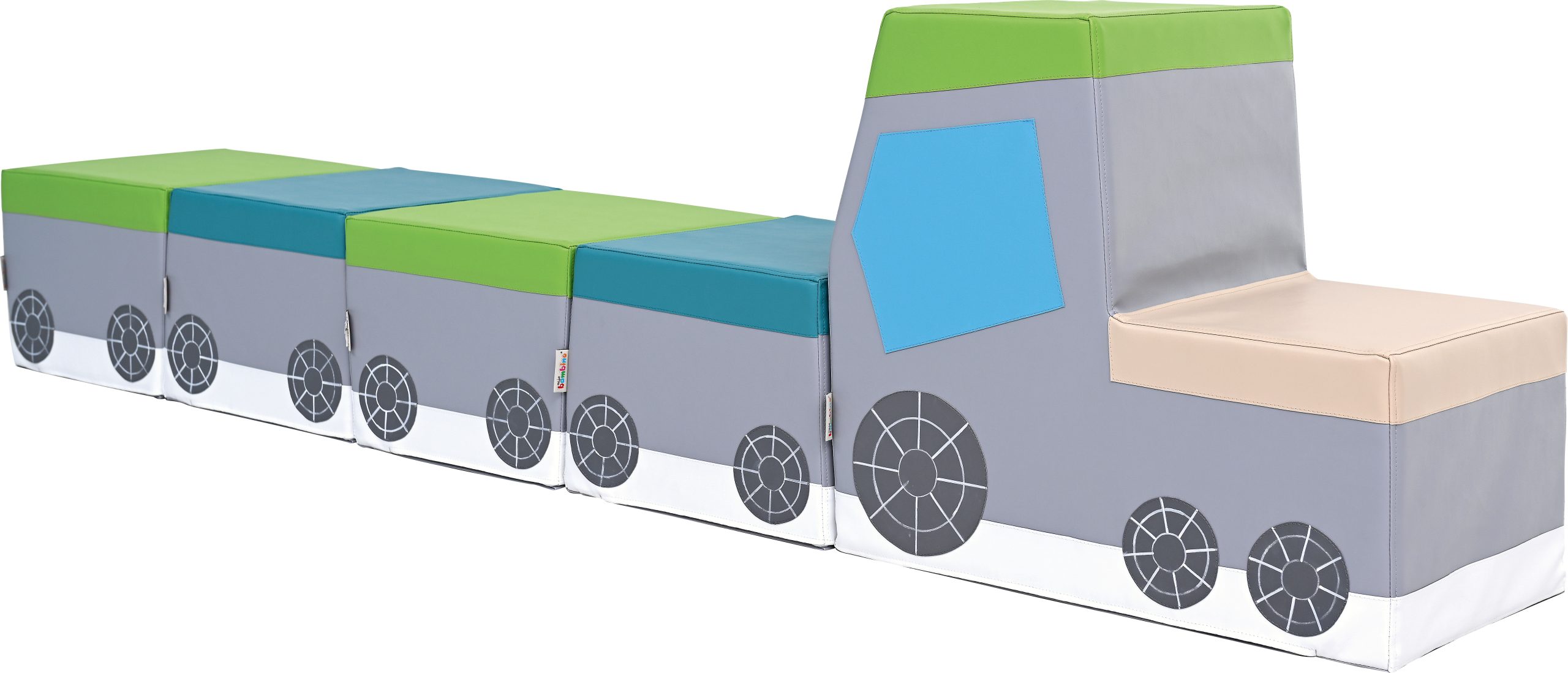 Sudarytas iš 4 vagonų ir lokomotyvo. Elementai aptraukti patvariu PVC audiniu, be ftalatų, lengvai valomi.