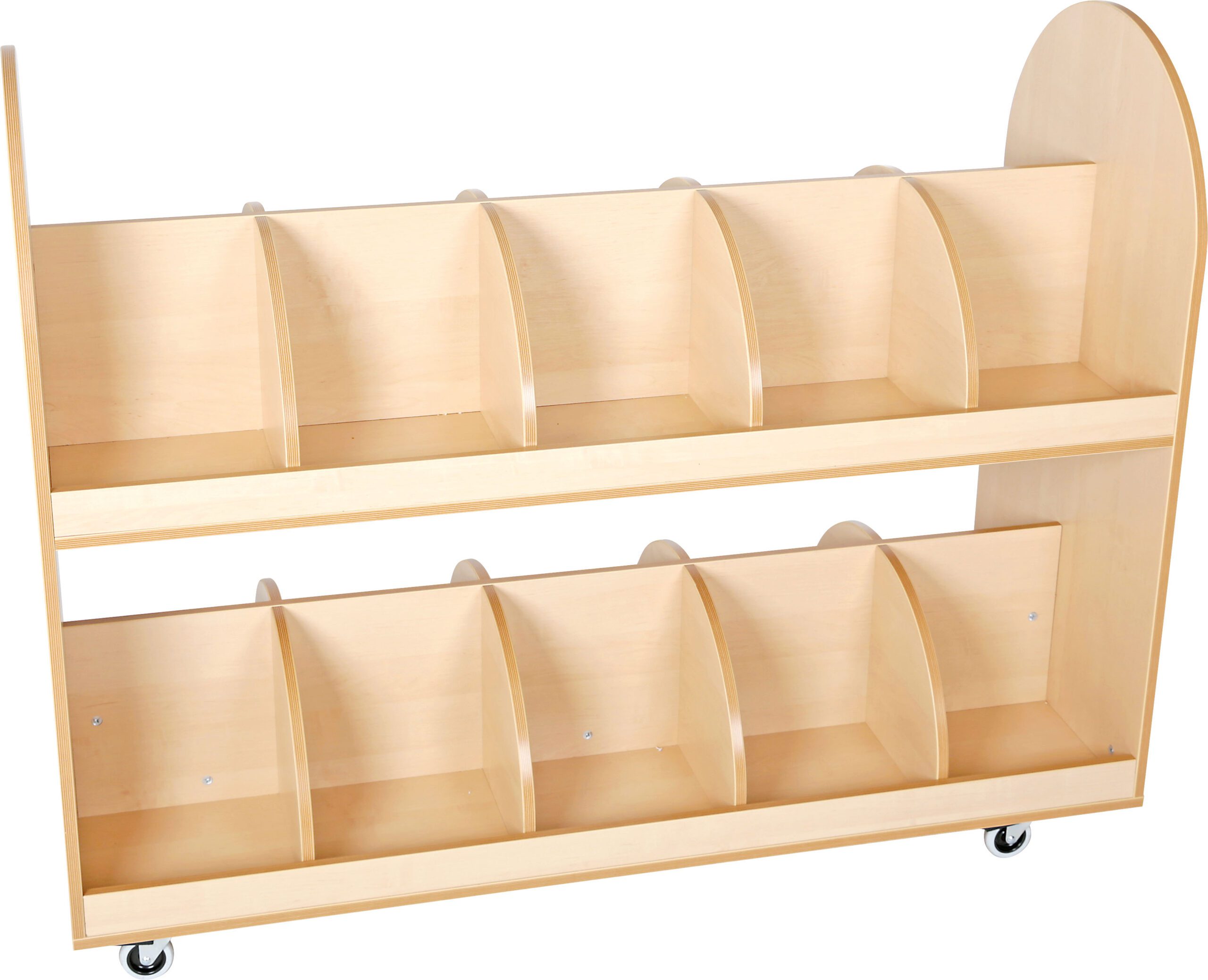 Dviejų lygių spintelė su ratukais, pagaminta iš 18 mm storio beržo spalvos laminuotos plokštės. Joje galima laikyti iki 20 kuprinių. Ratukai turi stabdžius.