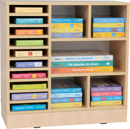 Funkcionali mobili spinta su talpiomis lentynomis leidžia laikyti įvairius sporto, muzikos reikmenis ir kt. Pagaminta iš klevo arba baltos 18 mm laminuotos plokštės su pilkais akcentais.