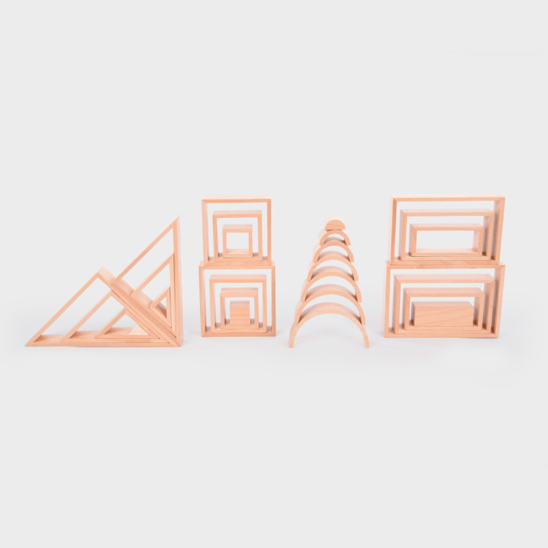 Tvirtos buko medienos formelės kūrybiškam statymui ir žaidimams. Lavina vaizduotę, loginį mąstymą, kalbą bei pažinimą.