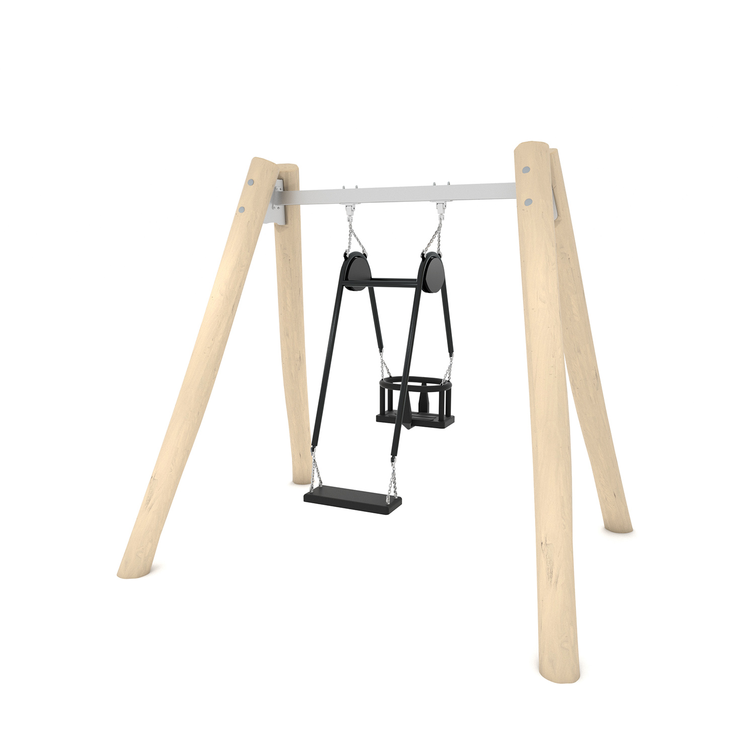 Natūralios medienos ROBINIA dvigubos sūpynės RB0520