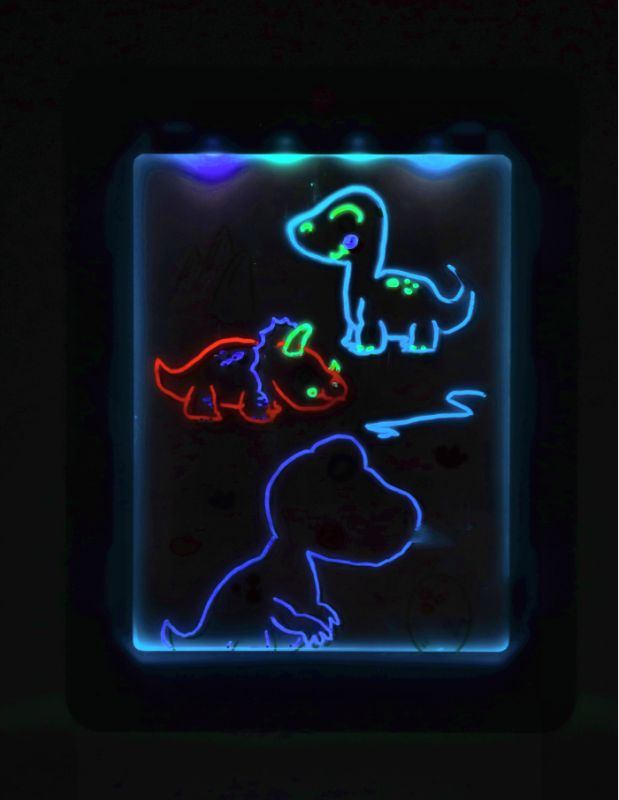 Lenta yra apšviesta šviesos diodais, o rinkinyje esantys žymekliai šviečia neoninėmis spalvomis. Tačiau tai dar ne viskas. Į rinkinį įeina 4 žymekliai (oranžinis, mėlynas, violetinis ir geltonas), o lenta šviečia 7 spalvomis, taip pat gali jas rodyti pakaitomis. Svarbiausia, kad tam tikra žymeklio spalva šviečia tik naudojant atitinkamą LED lemputę, pvz: