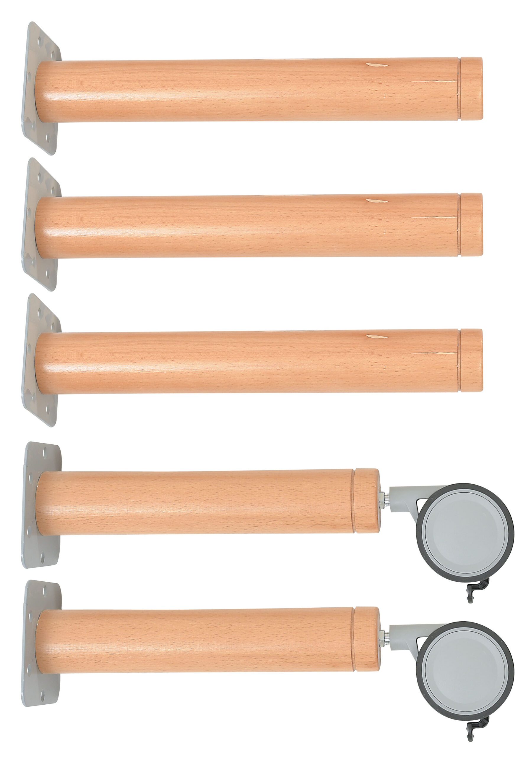 Stalo kojų komplektas (5 vnt.) iš medžio masyvo, reguliuojamas (arba ne) aukštis prisukant varžtais. Reguliuojamas komplektas: 5 pastatomos kojos. Nereguliuojamas komplektas: du kojos vienetai turi stabdžių ratukus ir 3 pastatomas kojas. Kojų skersmuo – 55 mm. Galimi stalo aukščiai: