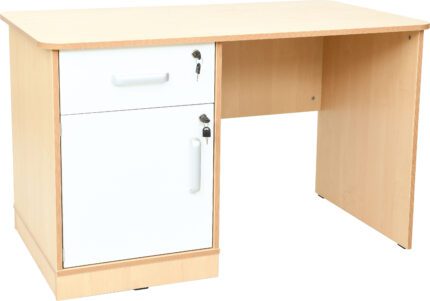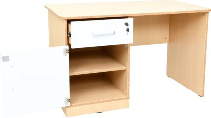Rašomasis stalas su spintele ir stalčiumi, pagamintas iš 18 mm laminuotos plokštės.