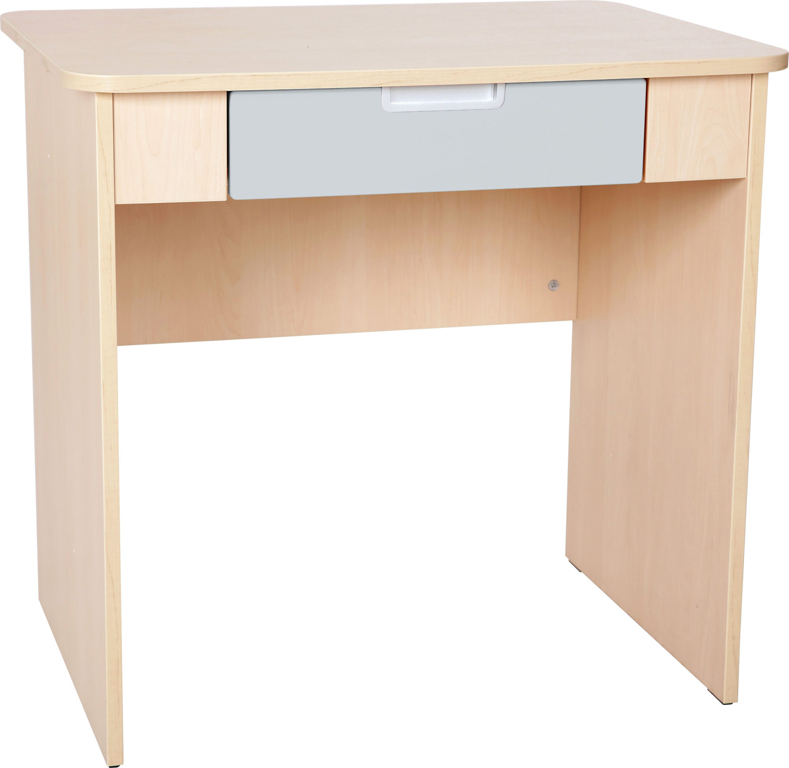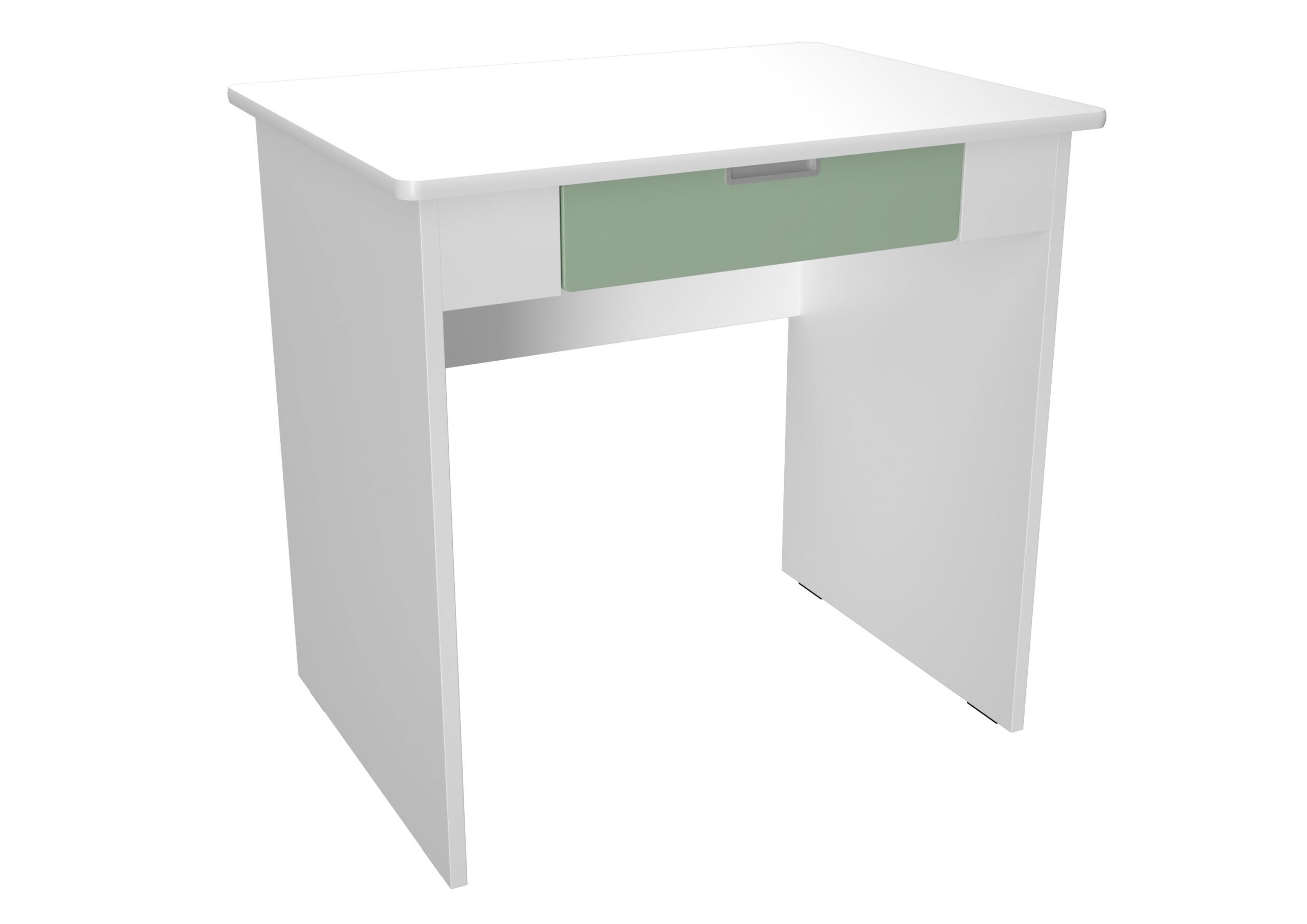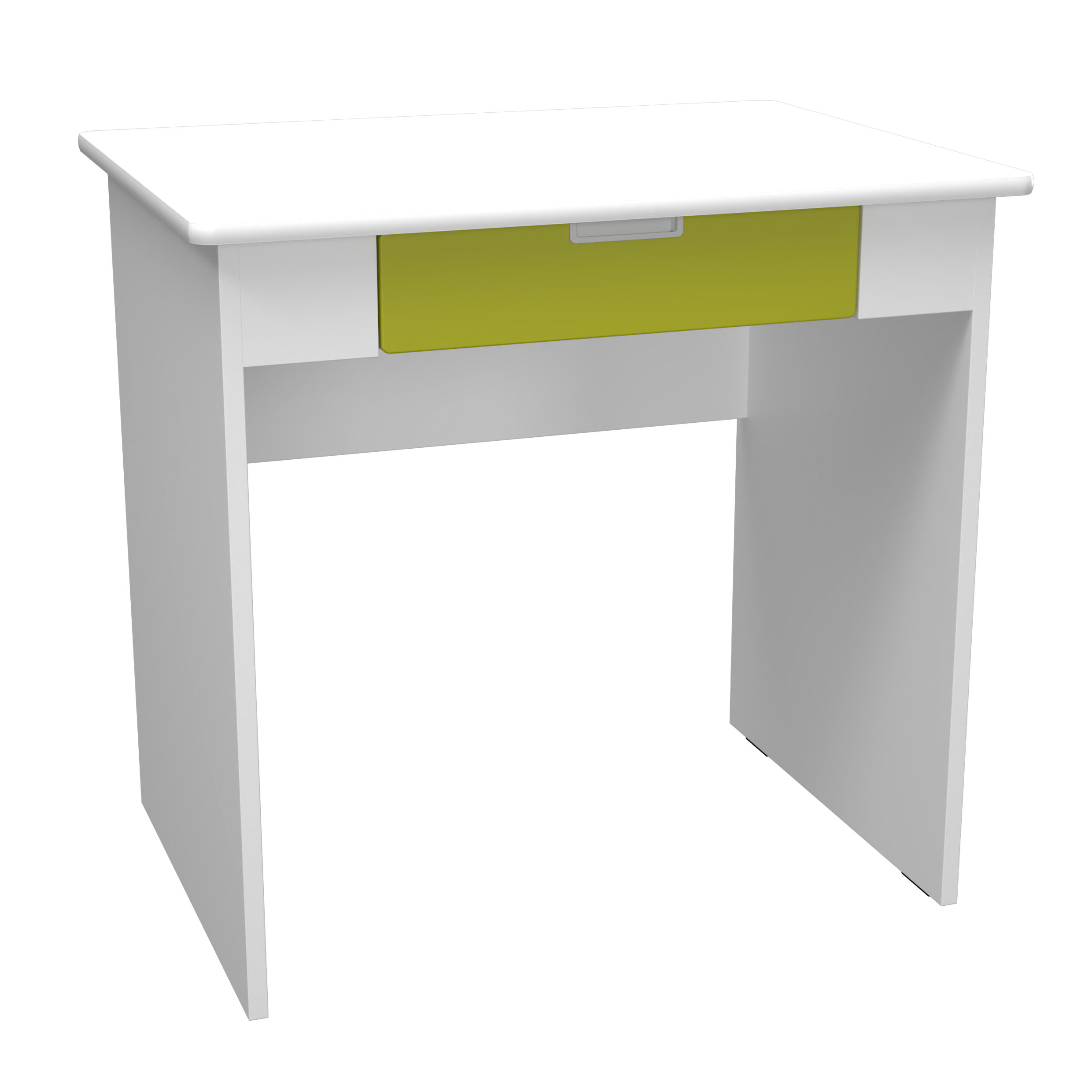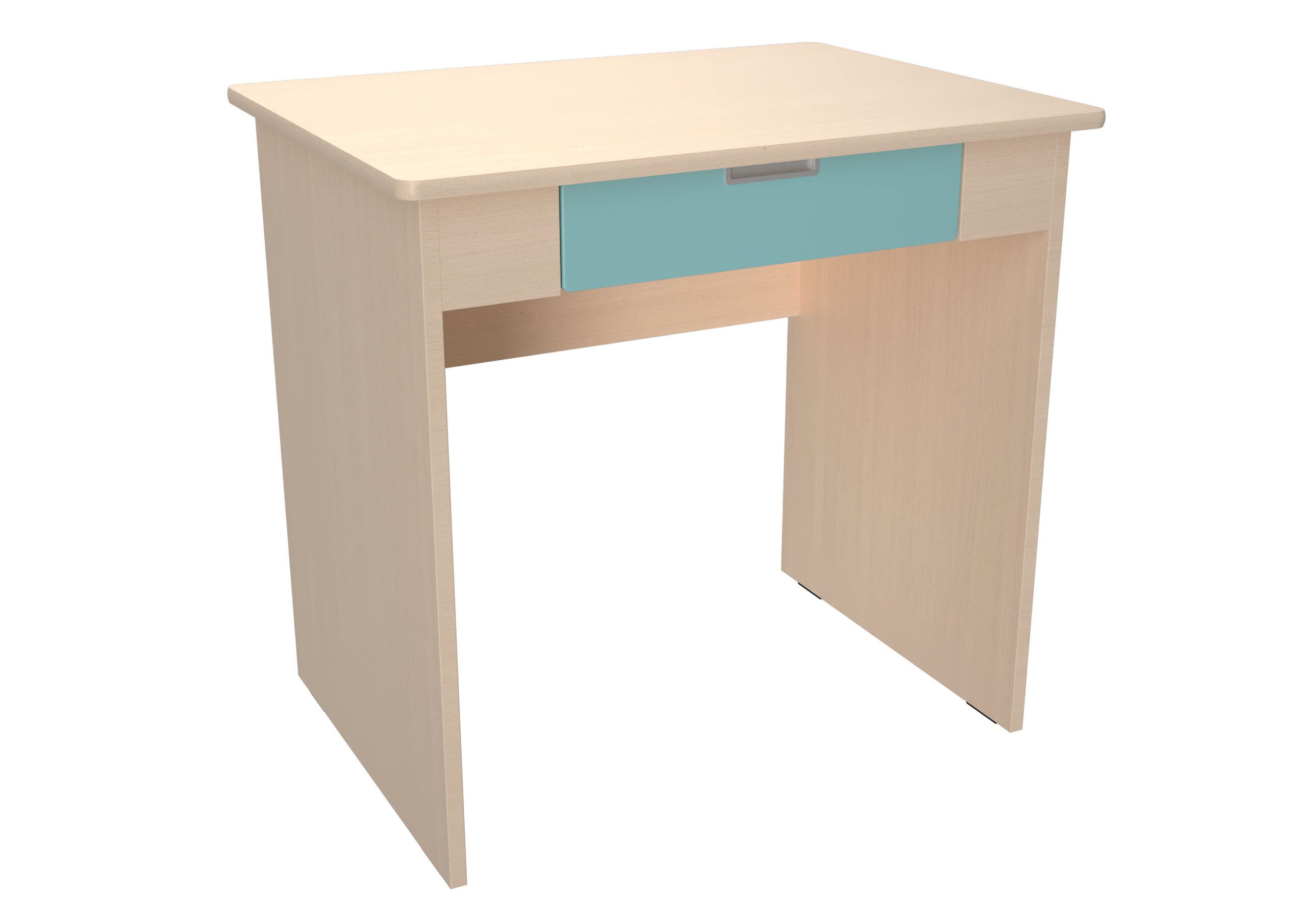 Rašomasis stalas su stalčiumi, pagamintas iš laminuotos medžio drožlių plokštės (klevo arba baltos spalvos), su spalvotais elementais, pagamintais iš foliuotos MDF plokštės. 80 x 60 x 76 cm