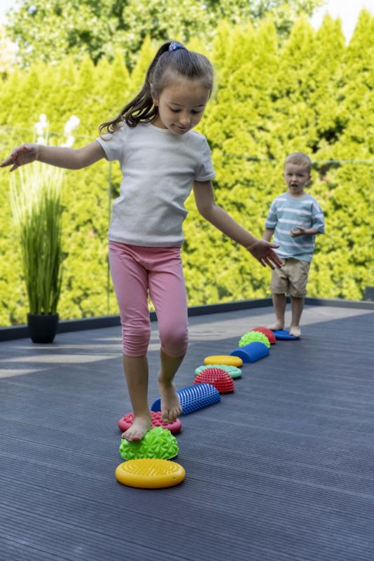Dydis: Sensorinis diskas – Φ17 cm, 19,5 cm; balansinė lėkštė – Φ16 cm; sensorinis pusapvalis ritinėlis – 30 x 12 cm