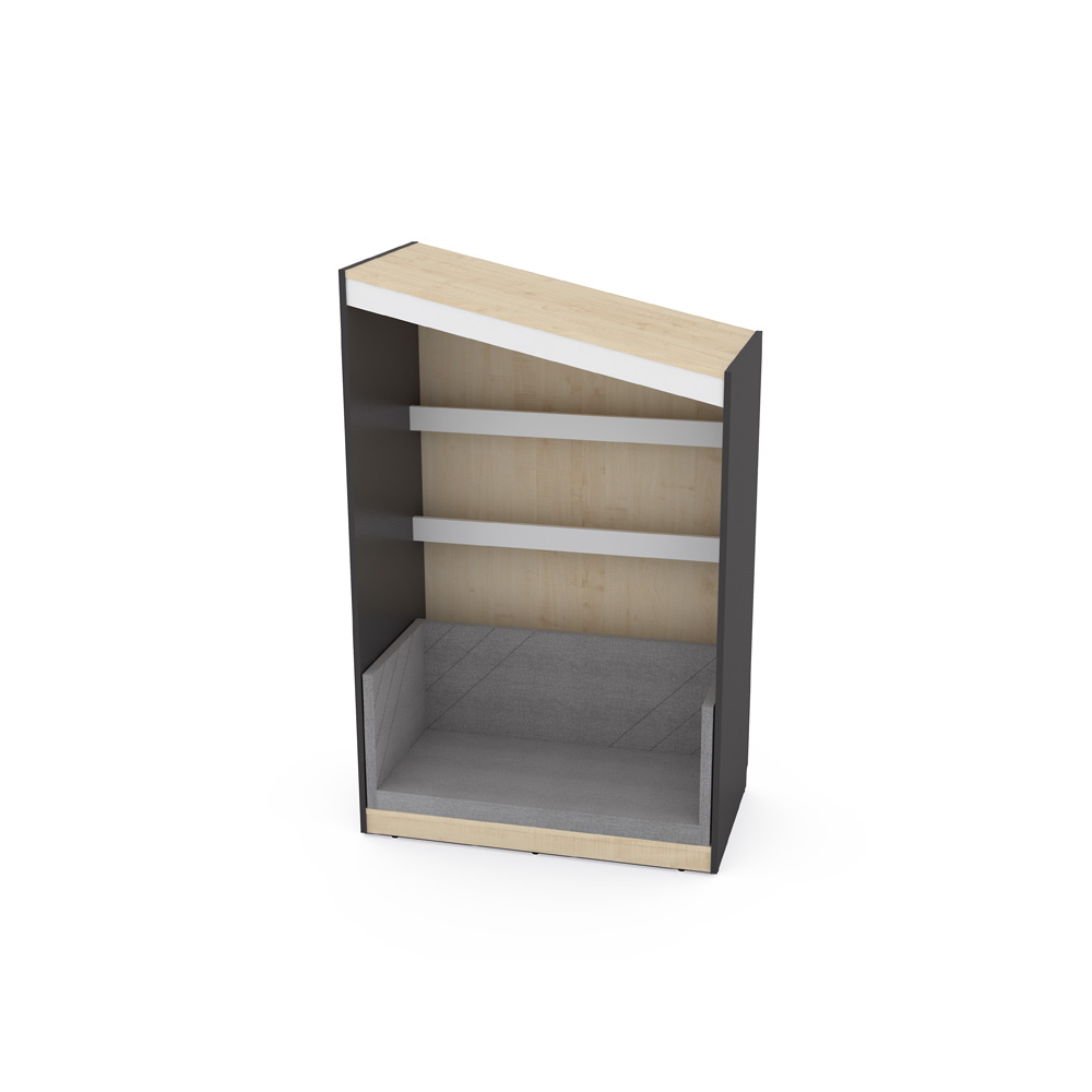 Šiame balde yra dvi knygų lentynos ir itin patogi gili sėdynė su aukštu atlošu, puikiai tinkanti atsipalaiduoti. Pagaminta iš laminuotos medžio drožlių plokštės.