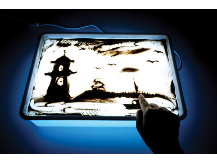 Nedidelė smėlio dėžė sensoriniams žaidimams. Ji suteikia vaikui nepaprastą vietą neribotam kūrybiškumui. Smėlio dėžės išskirtinumas – skaidraus plastiko dugnas, po kuriuo įrengtas apšvietimas. Šis derinys palengvina bėgimą pirštu palei dugną ir dar labiau stimuliuoja regos ir lytėjimo pojūčius. Pakelti smėlio dėžės apvadai neleidžia smėliui nekontroliuojamai išsibarstyti už veiklos zonos ribų. Rinkinio turinį galima naudoti vos išpakavus gaminį.