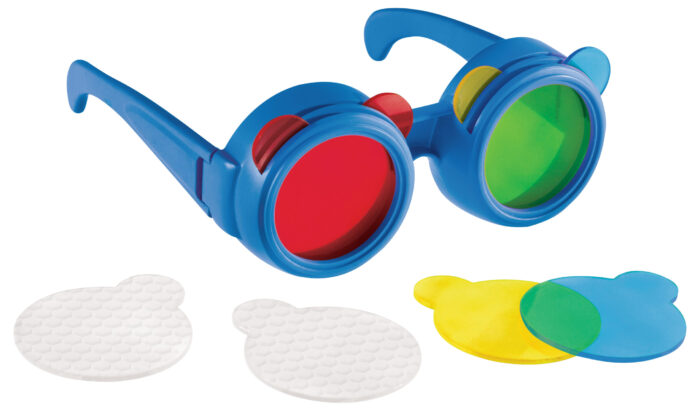 20 būdų pažinti spalvas. Akiniai parodo vaikui, kurios spalvos yra pagrindinės ir kas atsitinka, jei jas suliejame su kitomis spalvomis, kiek jų galima sukurti ir kaip jos vadinasi.