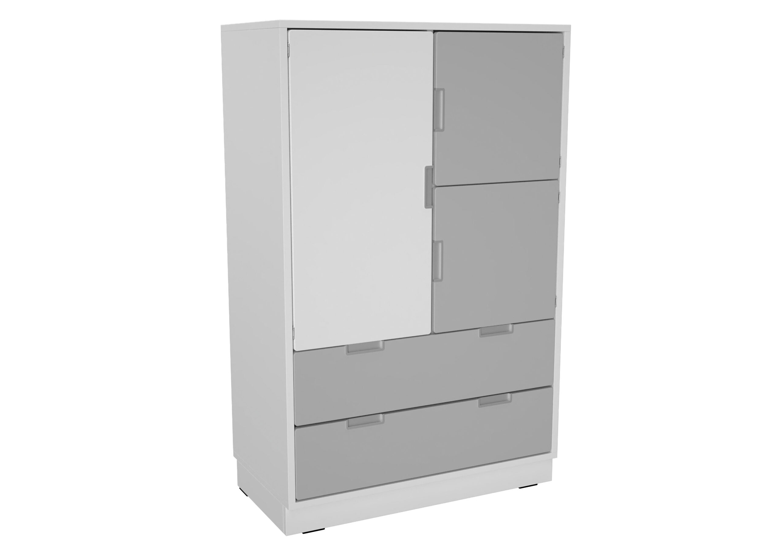 Baldai pagaminti iš 18 mm storio laminuotos klevo ir baltos spalvos plokštės, 18 mm storio priekinės dalys padengtos patvaria termoplastine fanera.