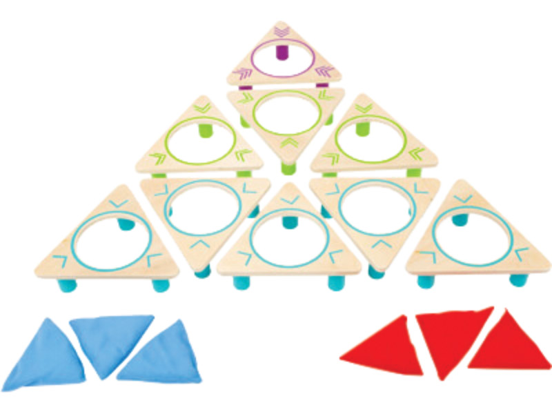 Tai vikrumo žaidimas, kurio metu reikia medžiaginiu maišeliu pataikyti į teisingą skylę trikampiuose. Kiekviena medinių figūrėlių spalva (violetinė, žalia ir mėlyna) reiškia skirtingą taškų skaičių. Trikampių išdėstymas yra savavališkas ir gali būti daug kartų keičiamas, siekiant paįvairinti žaidimą. Rinkinys yra puiki idėja įdomiam žaidimui tiek lauke, tiek viduje. Žaidimas lavina motorinius įgūdžius, akies-rankos koordinaciją ir skatina strateginį mąstymą.