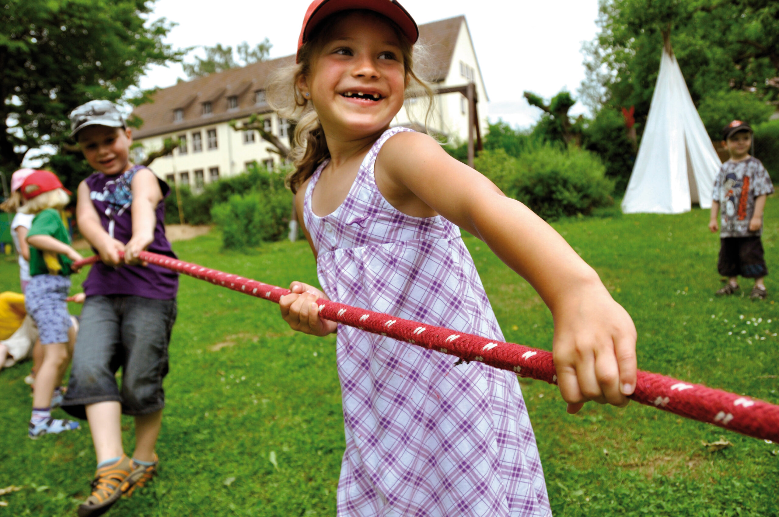 Medvilninė virvė. Vaikai lavina pusiausvyrą ir judesių koordinaciją bei mokosi dirbti kartu komandoje.
