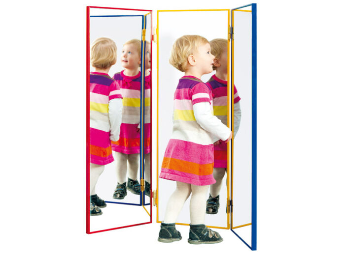 Didelis veidrodis, paprastai vadinamas triptiku. Tai nepakeičiama įranga kiekviename logopediniame kabinete ir mažylio kampelyje. Jis taip pat idealiai tinka žaidimams, ugdantiems vaiko savimonę ir stebėjimo jausmą. Gaminio dydis leidžia terapeutui ir vaikui dirbti vienu metu. Žiūrėjimo plokštuma pagaminta iš saugaus akrilo.