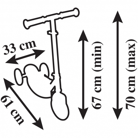 Reguliuojamas vairalazdės aukštis (67 ir 70 cm)