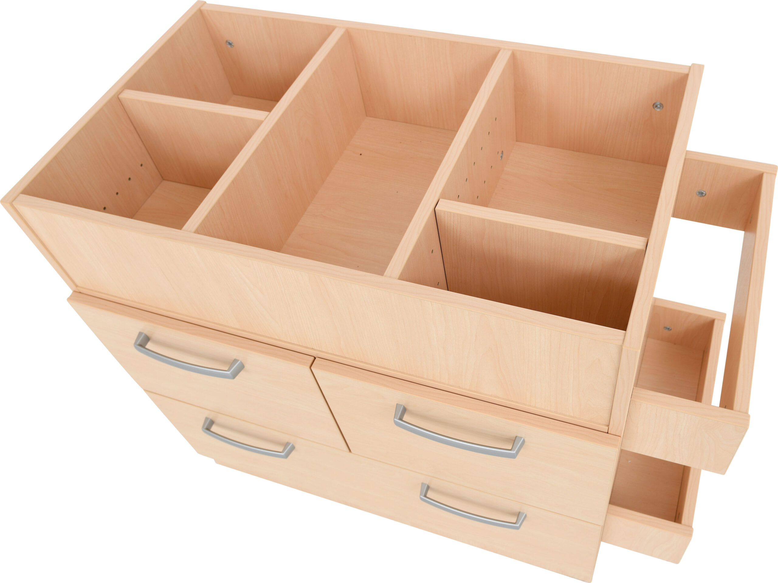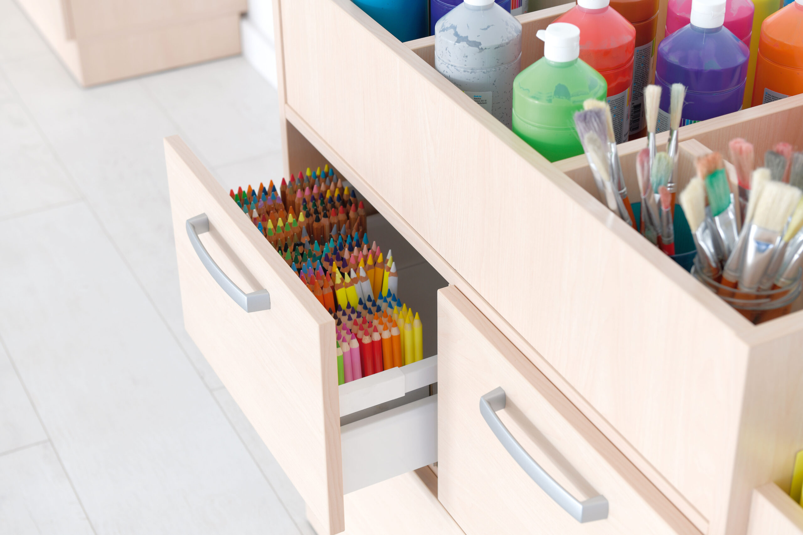 Spintelę galima naudoti kaip meno, muzikos ar gamtos kampelio įrangą. Joje yra didelis stalčius su daugybe skyrių smulkiems daiktams: sporto ar meno reikmenims, instrumentams ir kt. Dideliuose tarpuose tarp stalčių galima sudėti aukštas pagalbines priemones, pavyzdžiui, gaublį, mikroskopą ar dažus, o šoninė kišenė skirta popieriaus ritinėliams, žemėlapiams ir pan. Pagaminta iš baltos arba klevo laminuotos 18 mm storio plokštės.